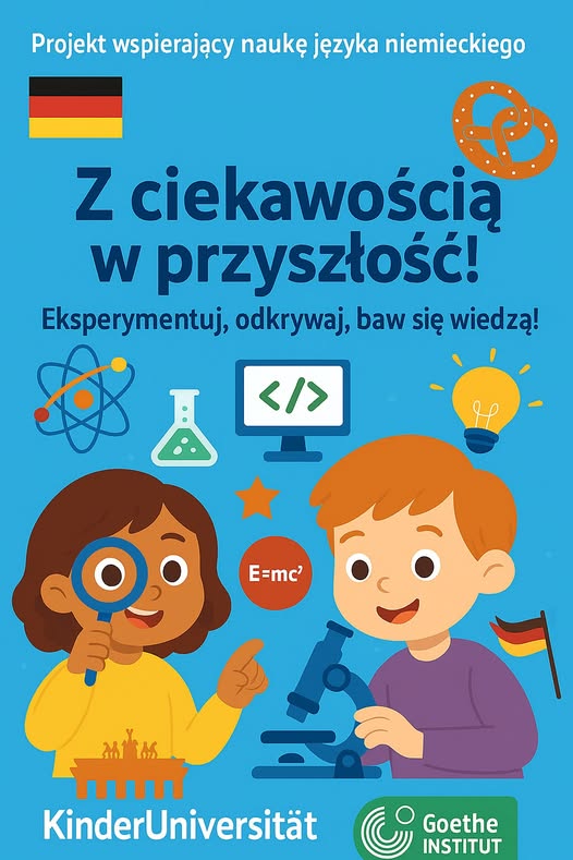 Już w tym roku szkolnym uczniowie klasy VII wyruszają w wyjątkową edukacyjną przygodę — wezmą udział w ogólnopolskim projekcie Cyfrowy Uniwersytet Dziecięcy Kinderuniversität, którego celem jest wsparcie nauki języka niemieckiego poprzez nowoczesne metody, interaktywne materiały i ciekawe wykłady online.