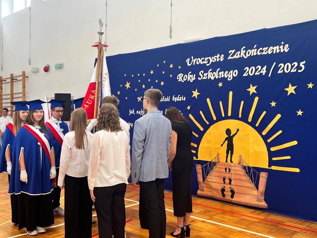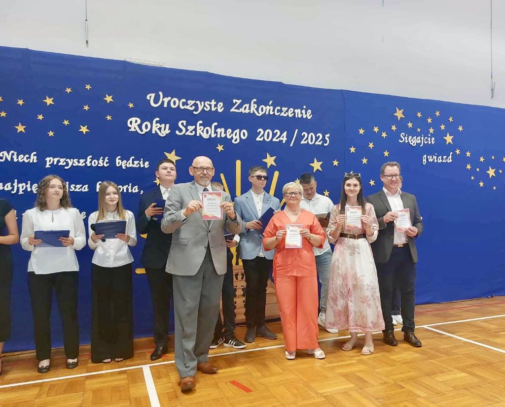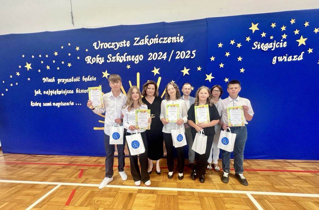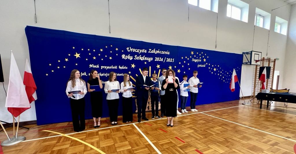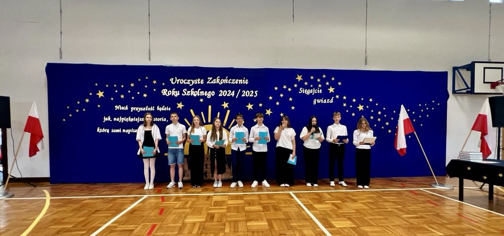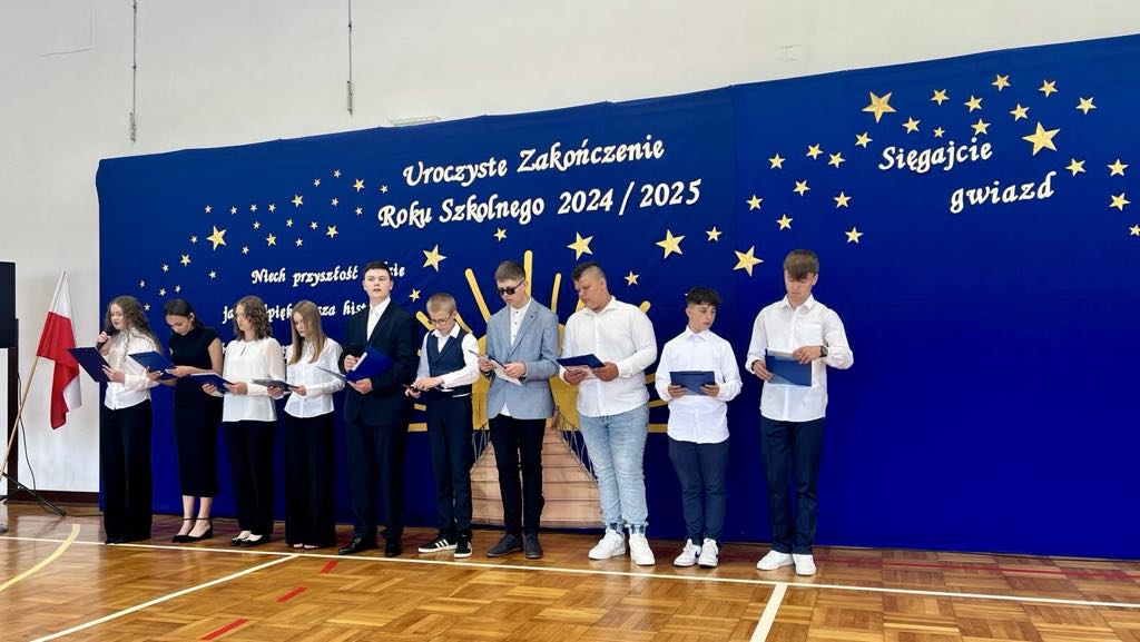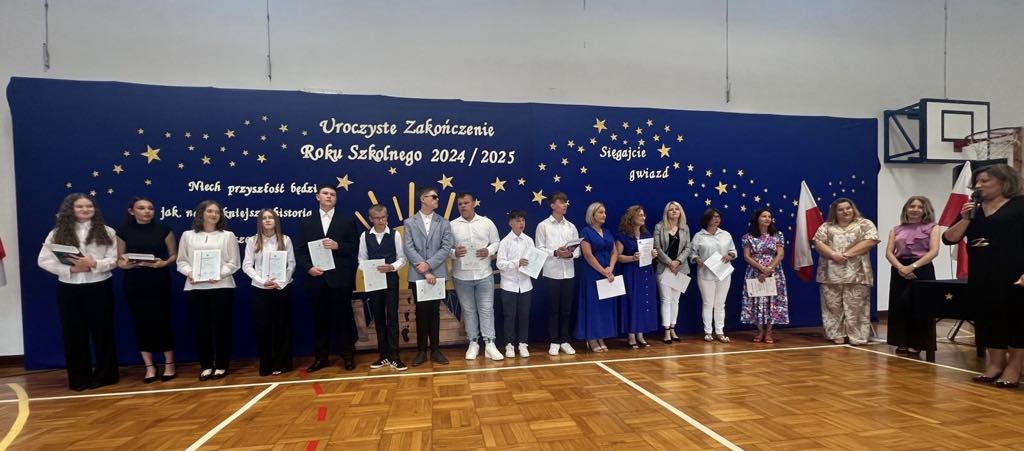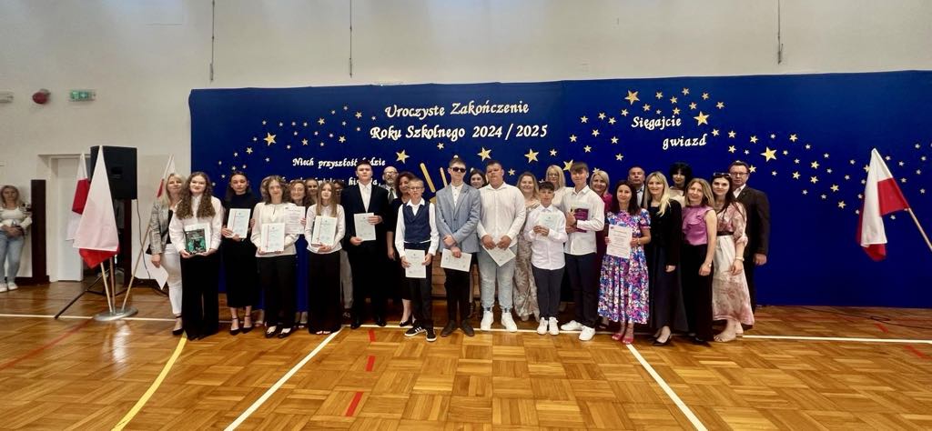 27 czerwca 2025 r. nadszedł czas, aby zakończyć kolejny rok nauki. Po uroczystej mszy, celebrowanej przez księdza Janusza Chamerę, wychowankowie oddziałów przedszkolnych i uczniowie klas I-VIII, nauczyciele, pracownicy oraz rodzice zebrali się w sali gimnastycznej Publicznej Szkoły Podstawowej im. Kardynała Stefana Wyszyńskiego w Wierzchowinach. Na początku uczestnicy uroczystości zaśpiewali hymn narodowy, po czym nastąpiło przekazanie sztandaru szkoły. Dalszą część akademii stanowiło przedstawienie „Gwiazdorska obsada”, podczas którego pani dyrektor, nauczyciele i pracownicy szkoły oraz absolwenci otrzymali angaże do różnych produkcji filmowych, ponieważ zostali dostrzeżeni przez producentów największych telewizji w naszym kraju. Były także podziękowania dla rodziców i kilka słów od klasy siódmej. Następnie Pani Dyrektor Justyna Turzyńska podsumowała mijający rok szkolny, wręczyła ósmoklasistom świadectwa ukończenia szkoły. W dalszej kolejności nagrody otrzymali ci, którzy osiągnęli sukcesy w zawodach sportowych, a także najlepsi czytelnicy, członkowie szkolnego chóru oraz pięcioro wyjątkowych uczniów za zaangażowanie społeczne. Za swoją działalność podziękowanie dostał również Samorząd Uczniowski. Pozostałe klasy otrzymały świadectwa od swoich wychowawców w salach lekcyjnych. Kolejny rok szkolny za nami. Chwilami było ciężko, chwilami zabawnie, kręte ścieżki prowadziły nas do tego dnia. Jednak mamy nadzieję, że każdy z uczniów pozytywnie wspomina minione miesiące. Absolwentom zaś życzymy, by rozwijali swoje talenty i pasje oraz zawsze byli dobrymi ludźmi. Sięgajcie gwiazd!