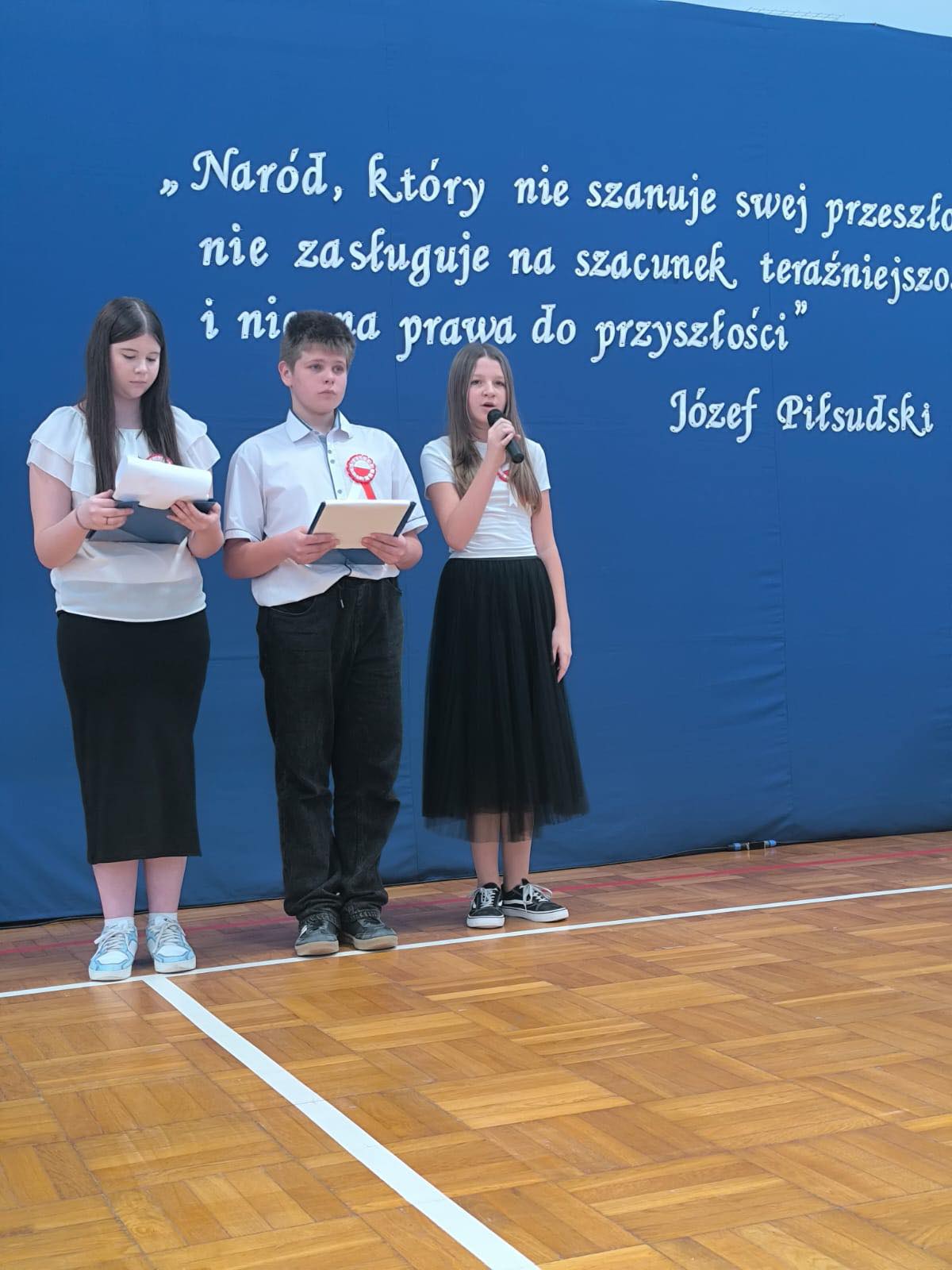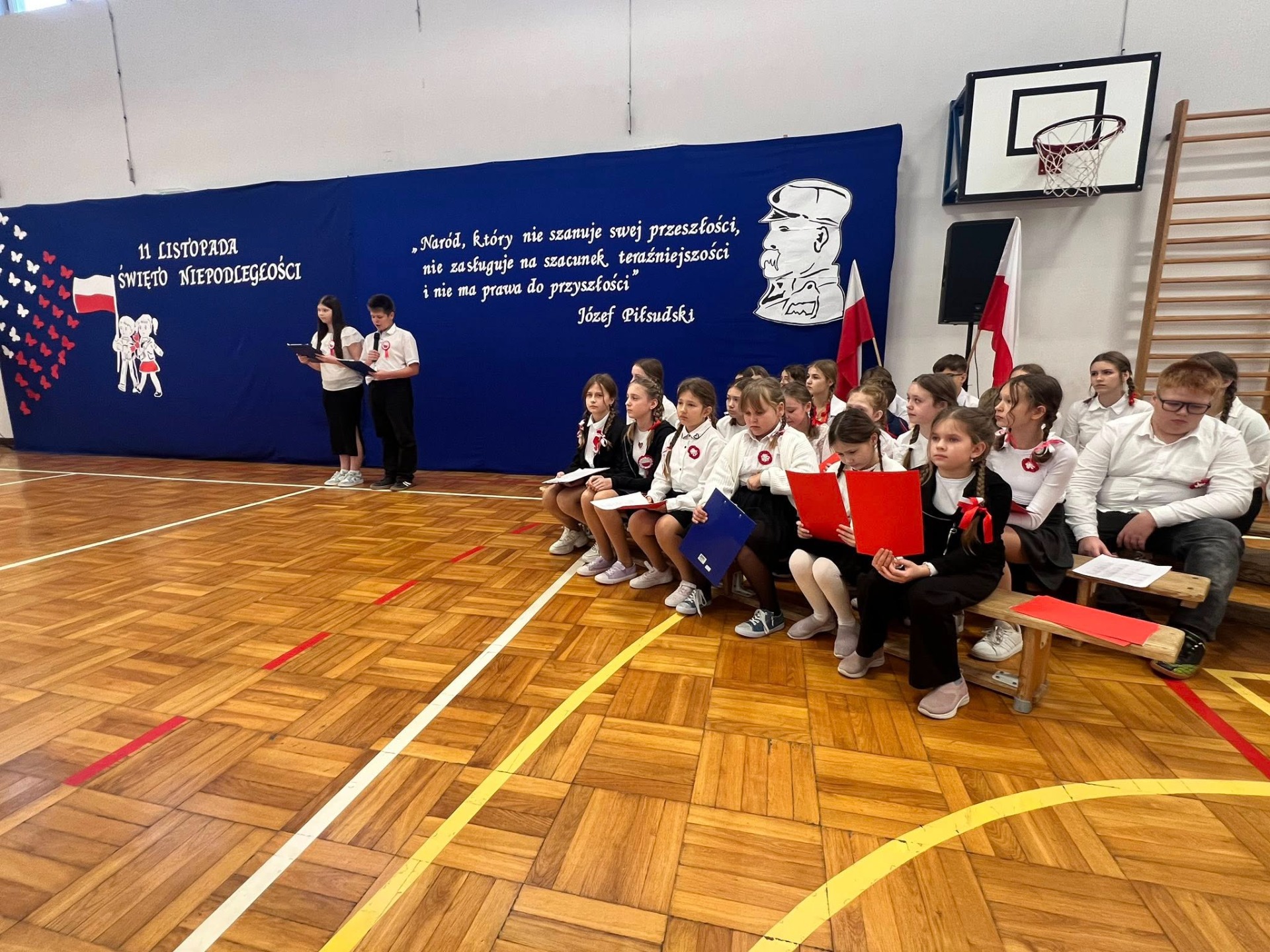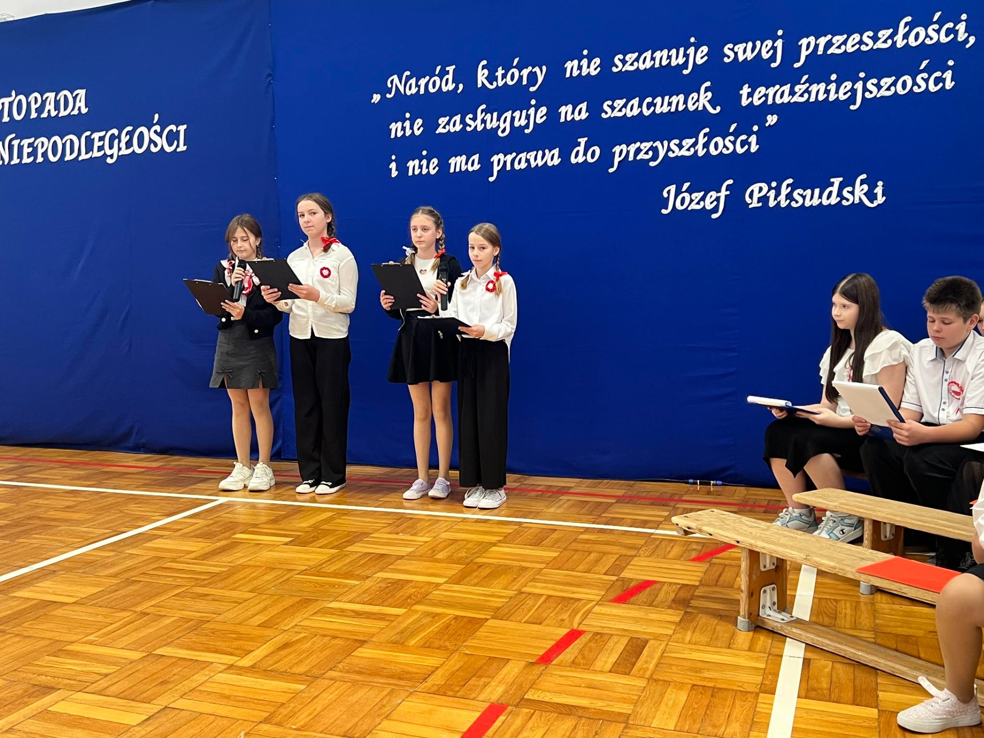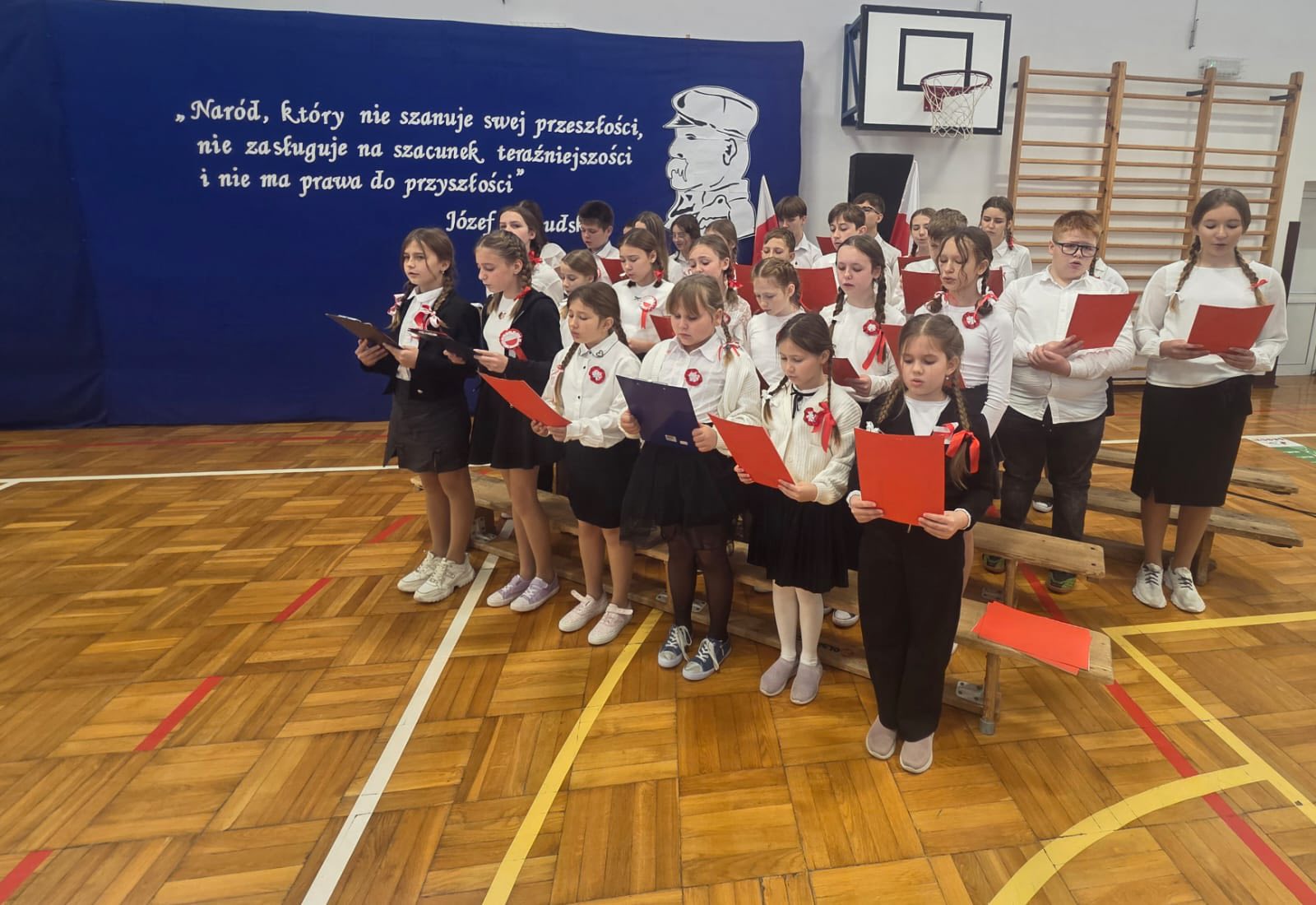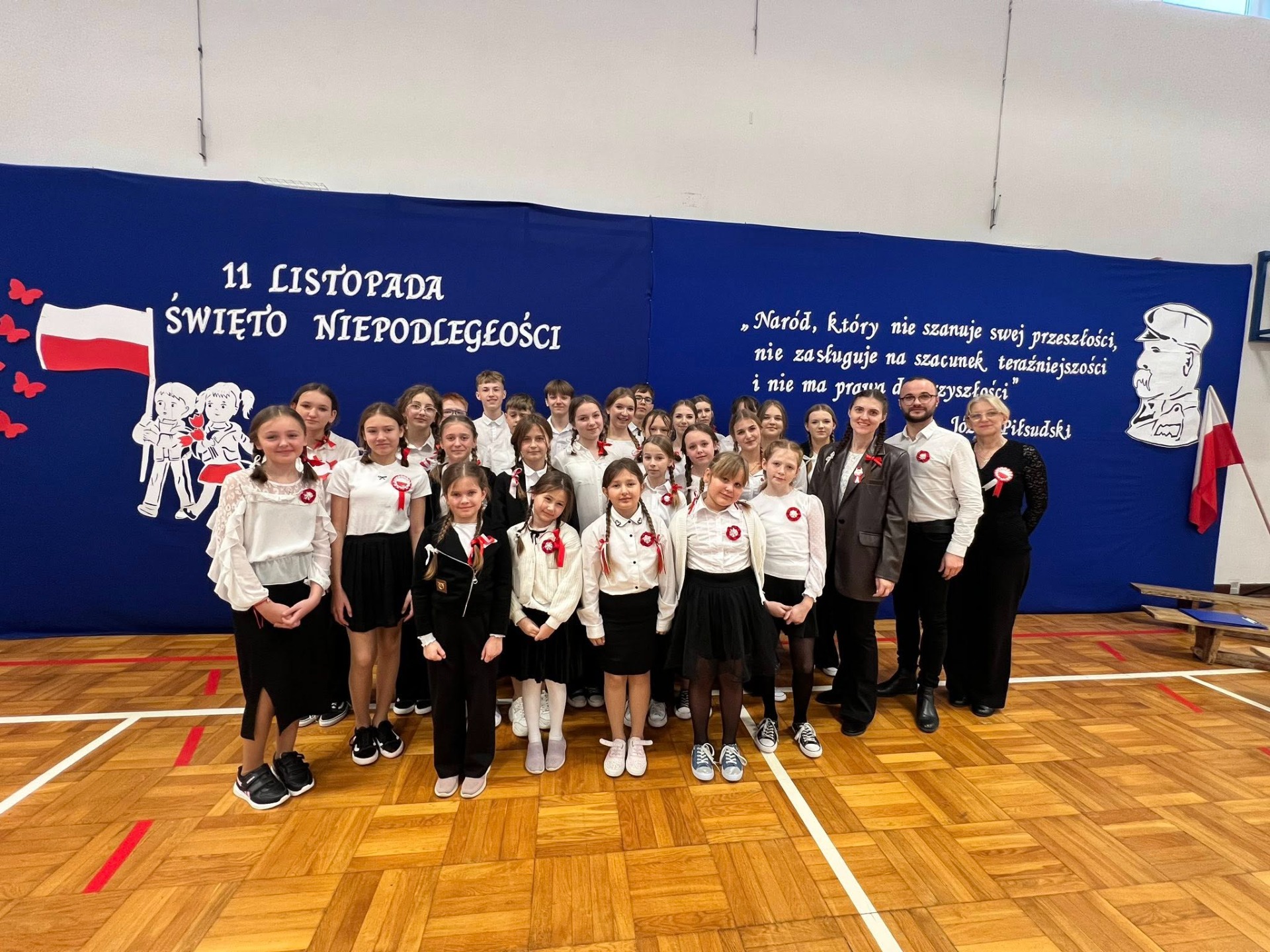 7 listopada uroczystą akademią uczciliśmy 107 rocznicę odzyskania niepodległości przez Polskę. Wyjątkowo zabrzmiał Mazurek Dąbrowskiego odśpiewany przez całą społeczność szkolną w obecności pocztu sztandarowego. Tym samym nasza szkoła włączyła się do udziału w kolejnej edycji ogólnopolskiej akcji "Szkoła do hymnu". W części artystycznej narratorzy przypomnieli koleje losu naszej Ojczyzny po zabory, zrywy narodowe, próby wskrzeszenia Polski, aż do odzyskania niepodległości w 1918 roku. Idealnym dopełnieniem rzeczowych komentarzy, przedstawiających tło historyczne, były liczne pieśni patriotyczne wykonane w porywający sposób przez chór szkolny oraz solistów.