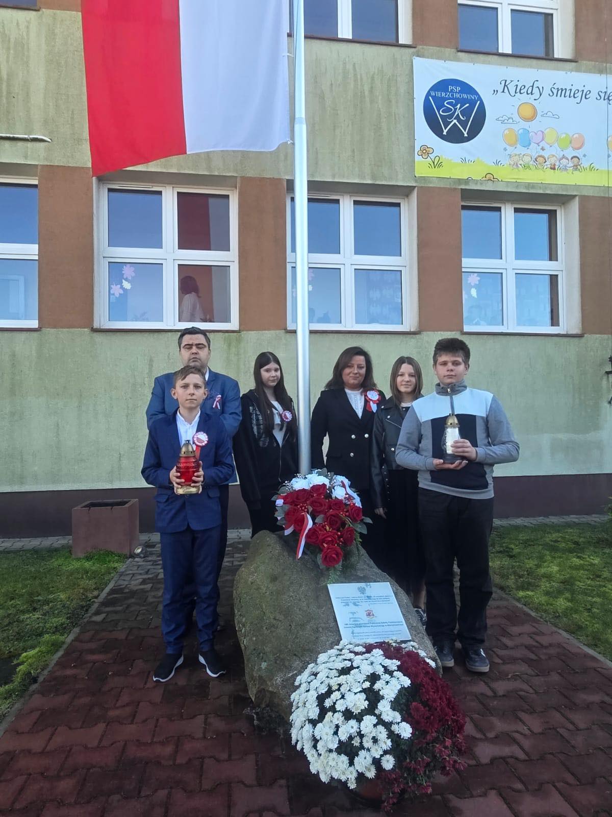 Tradycyjnie zwieńczeniem uroczystości było zapalenie zniczy przed głazem pamięci.