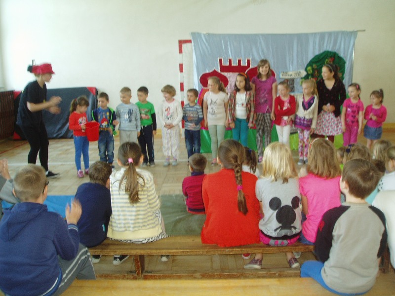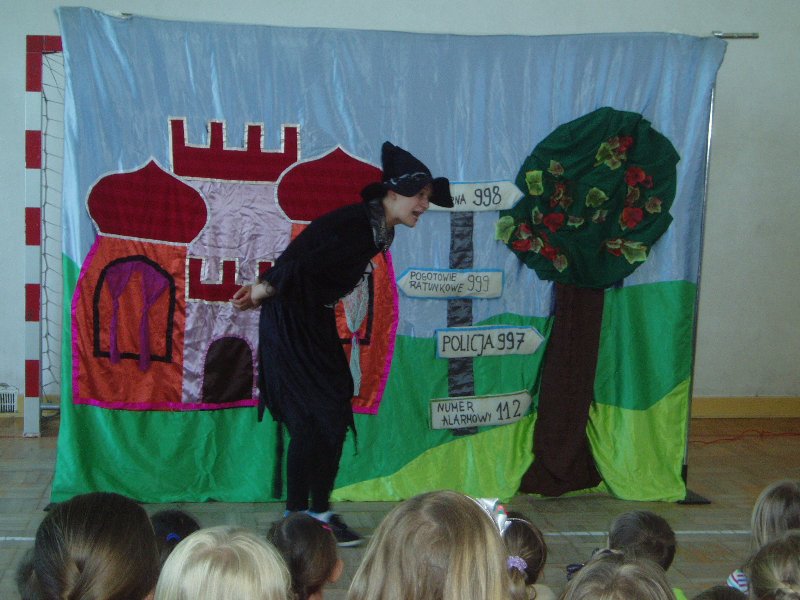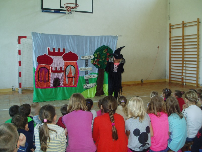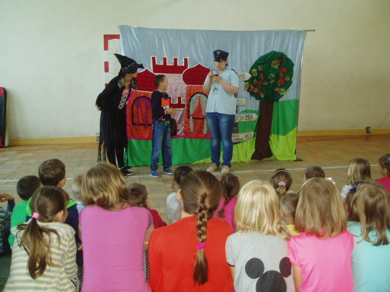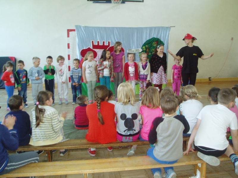 21 maja nasza szkoła gościła aktorów z Teatru Premiera w Bydgoszczy. Historia przedstawiona dzieciom pt. „Pierwsza pomoc w Bajkoloandii” opowiadała o tym, jak postępować w niebezpiecznych sytuacjach. Uczniowie oddziałów przedszkolnych oraz klas I - III zgromadzeni na widowni pomagali głównemu bohaterowi Antkowi rozwiązać zaistniałe problemy. Wszystkim bardzo podobała się przedstawiona historia. W trakcie przedstawienia utrwalaliśmy zasady postępowania w sytuacji zagrożenia oraz znajomość numerów alarmowych. Aktorzy otrzymali gromkie brawa od najmłodszej publiczności.