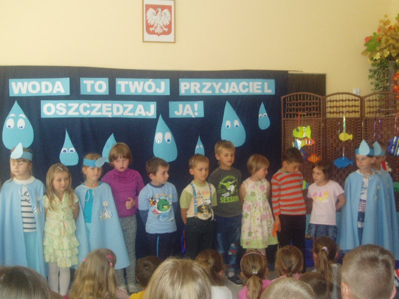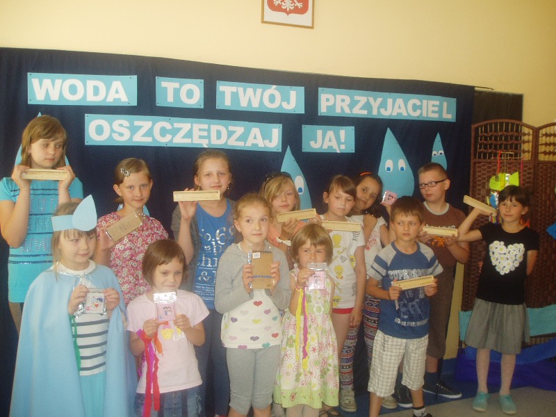 W naszej szkole odbył się 17. 06. 2014 r. montaż słowno -muzyczny ,,Woda to twój przyjaciel- oszczędzaj ją” w wykonaniu młodszych dzieci. Tego dnia zostały wręczone nagrody za konkurs plastyczny ,,Gdzie mieszka woda?” . Konkurs był skierowany dla dzieci z oddziałów przedszkolnych . Organizatorami tego konkursu byli wychowawcy oddziałów przedszkolnych oraz klas 1-3. Zwycięzcami zostali: