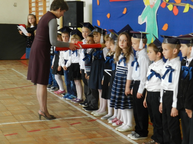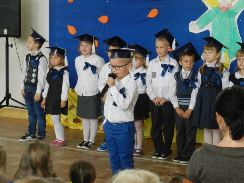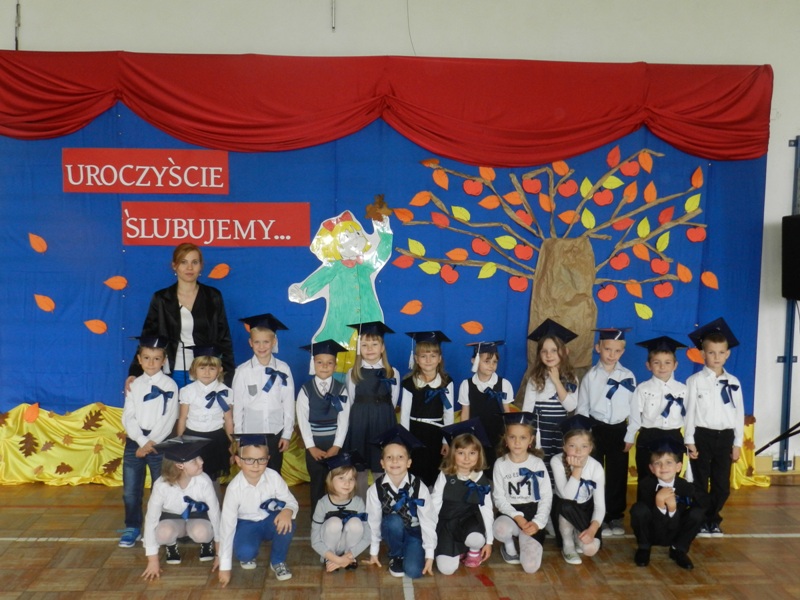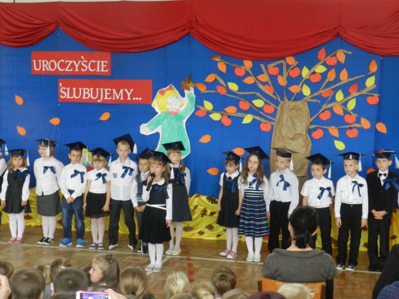 21 października 2014 roku w naszej szkole odbyła się piękna uroczystość przyjęcia najmłodszych uczniów w poczet Zespołu Szkół Publicznych im. Kardynała Stefana Wyszyńskiego. Swoją obecnością zaszczycili nas: Pan Wojciech Walczak Wójt Gminy Jedlińsk, Pan Waldemar Cichowlas Radny Rady Gminy Jedlińsk, przedstawiciele Rady Rodziców oraz stowarzyszenia „Czas na zmiany”. Do tej uroczystej chwili dzieci przygotowywały się od pierwszego dzwonka. Poznawały obowiązujące regulaminy, prawa i obowiązki każdego ucznia. Swoją pilną pracą udowodniły, że są gotowe stać się pełnoprawnymi uczniami klasy pierwszej. Wśród jesiennej dekoracji przedstawiły krótki występ artystyczny i złożyły uroczyste ślubowanie przed sztandarem szkoły. Pani Dyrektor Dorota Dobosz dokonała pasowania „wielkim ołówkiem”, wręczyła dyplomy i upominki od rodziców. Każde dziecko otrzymało również miłe niespodzianki od wszystkich zaproszonych gości. Ten wielki dzień z pewnością pozostanie na długo w pamięci uczniów klasy pierwszej. Rodzicom gratulujemy wspaniałych pociech, a dzieciom życzymy wielu sukcesów w nauce.