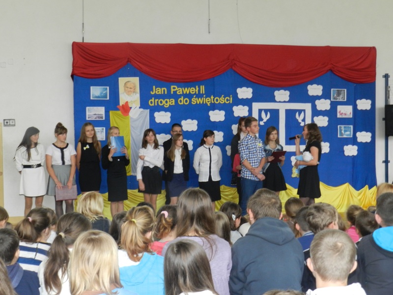 W naszej szkole również miała miejsce uroczysta akademia, która stanowiła refleksję nad pontyfikatem papieża Polaka pod hasłem: ,,Jan Paweł II – droga do świętości’’.
