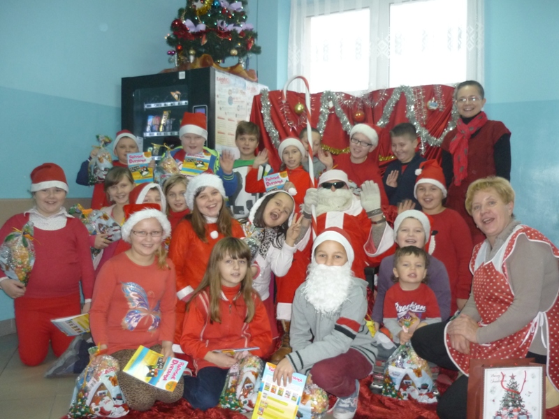 Chociaż za oknami brak śniegu nastrój świąteczny w naszej szkole gościł od samego rana – to zasługa Św. Mikołaja, który odwiedził nas 5 grudnia. Byliśmy bardzo zaintrygowani niecodziennym wyglądem osoby przemierzającej szkolne korytarze. Mikołaj rozmawiał z dziećmi, wysłuchał wielu piosenek i wierszy przygotowanych specjalnie dla niego. Nie zapomniał również o prezentach dla każdego dziecka.