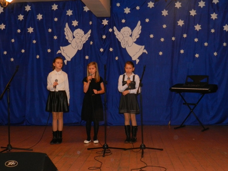 Wśród 21 podmiotów wykonawczych znalazło się trzy podmioty uczniów ze szkoły w Wierzchowinach, które przygotowała pani Beata Czwarno. Dwa podmioty stanowili soliści m. in. Monika Bolek z kl. 2 gimnazjum, która wykonała dwa utwory: ,,Gdy się Chrystus rodzi’’ i ,,Nie było miejsca dla Ciebie’’ za które otrzymała II miejsce. Natomiast Klaudia Szatan z kl. 3 gimnazjum wykonała następujące utwory: ,,Przybieżeli do Betlejem pasterze’’, ,,Lulajże Jezuniu’’ otrzymała wyróżnienie.