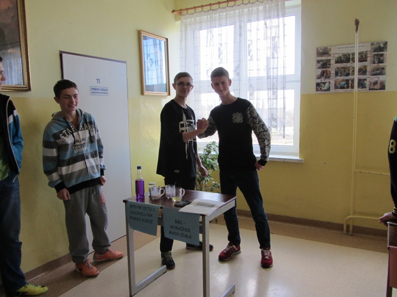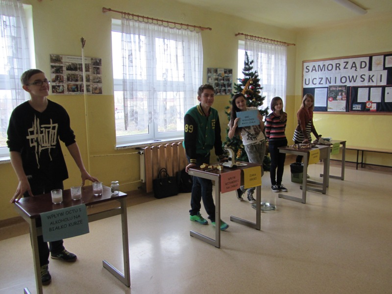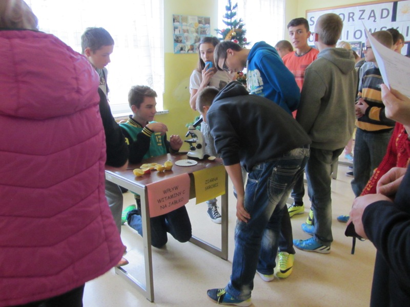 Podczas przerwy uczniowie wykrywali związki organiczne znajdujące się w pokarmie, obliczali BMI, czyli wskaźnik masy ciała oraz badali wpływ alkoholu i octu na białko. Ponadto można było obejrzeć pod mikroskopem ziarna skrobi. Podczas przerwy uczniowie analizowali także wpływ witaminy C na jabłko.