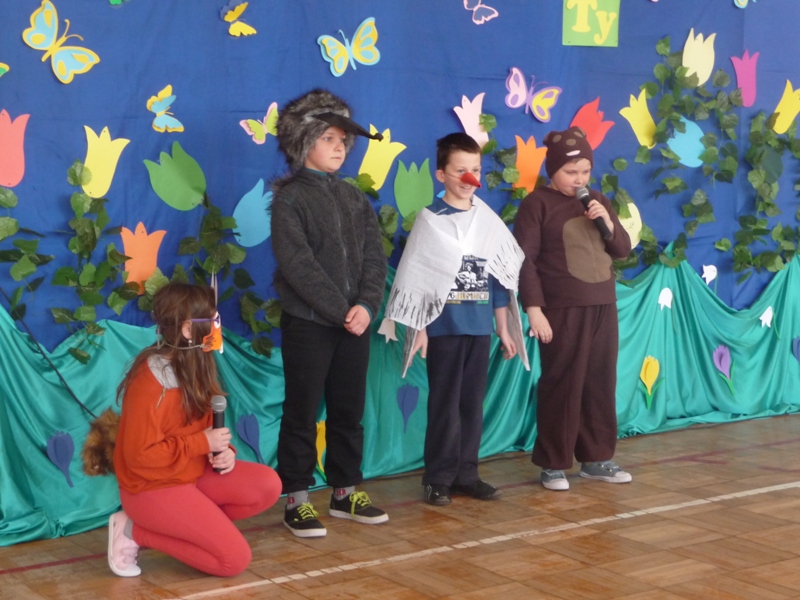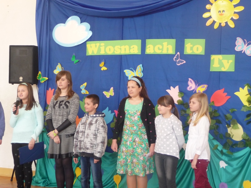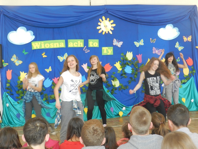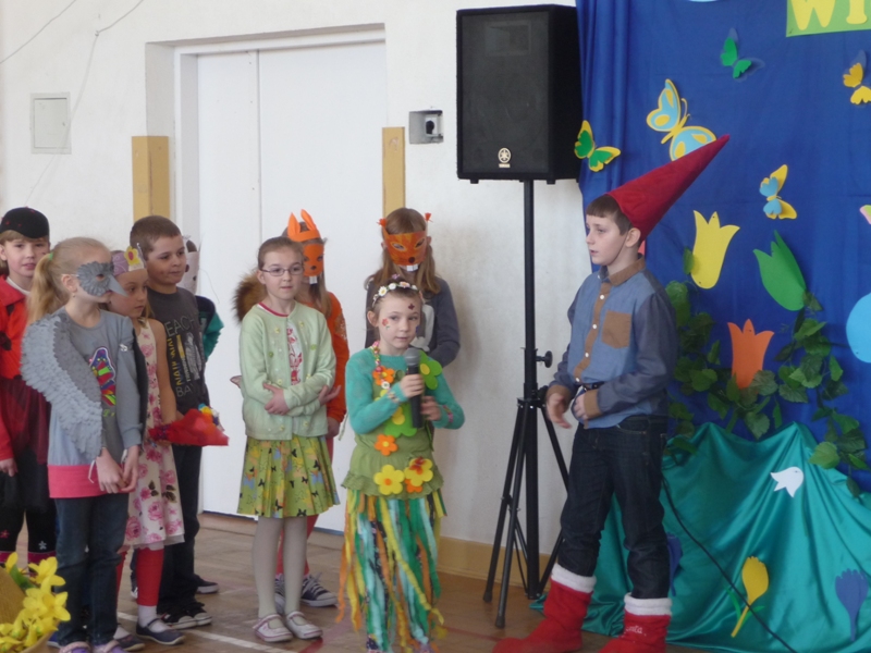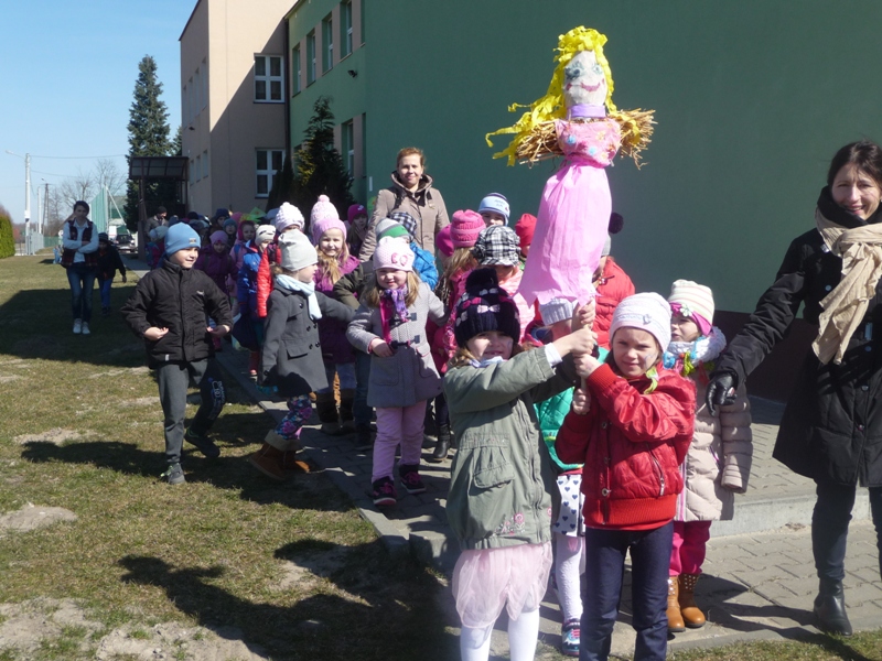 Od wielu lat w naszej szkole zgodnie z tradycją uroczyście obchodzimy Pierwszy Dzień Wiosny. Podczas uroczystości swój program artystyczny przedstawiły klasy 0 – 4 pod kierunkiem wychowawców. Uczniowie klasy czwartej przygotowali dla młodszych kolegów i koleżanek quiz o wiośnie. Każdy kto tego dnia odważył się przywitać wiosnę strojem, mógł wziąć udział w konkursie na najciekawsze przebranie. Nie obyło się bez nagród i słodkich upominków. Jak stary zwyczaj każe, w barwnym korowodzie przez dzieci oddziału przedszkolnego oraz klas I-IV zaniesiona została i uroczyście spalona Marzanna. Natomiast dla uczniów klas V-VI i I-III gimnazjum zostały przeprowadzone quizy o tematyce wiosennej. Swoją formę fizyczną na wiosnę mogli sprawdzić w konkursach.
