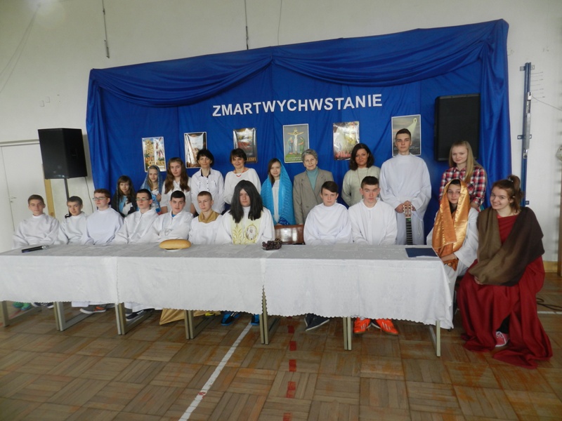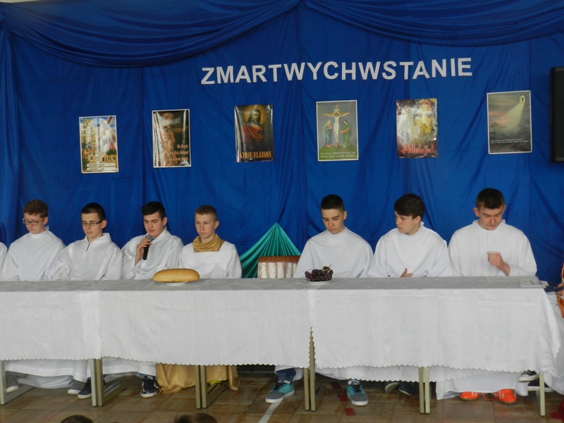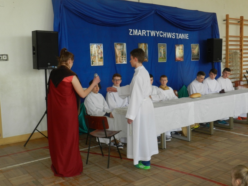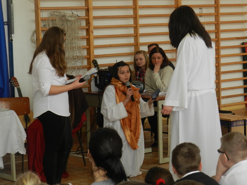 Poranek Wielkanocny pt. ,,Zmartwychwstanie’’ przybliżył nam wydarzenia Wielkiego Piątku i ukazał radość Wielkiej Niedzieli. Część artystyczną przygotowali uczniowie z gimnazjum pod kierunkiem pani Beaty Czwarno, muzykę przygotowała pani Justyna Turzyńska, a nad sprzętem technicznym czuwał pan Piotr Jończyk za co bardzo dziękuję.