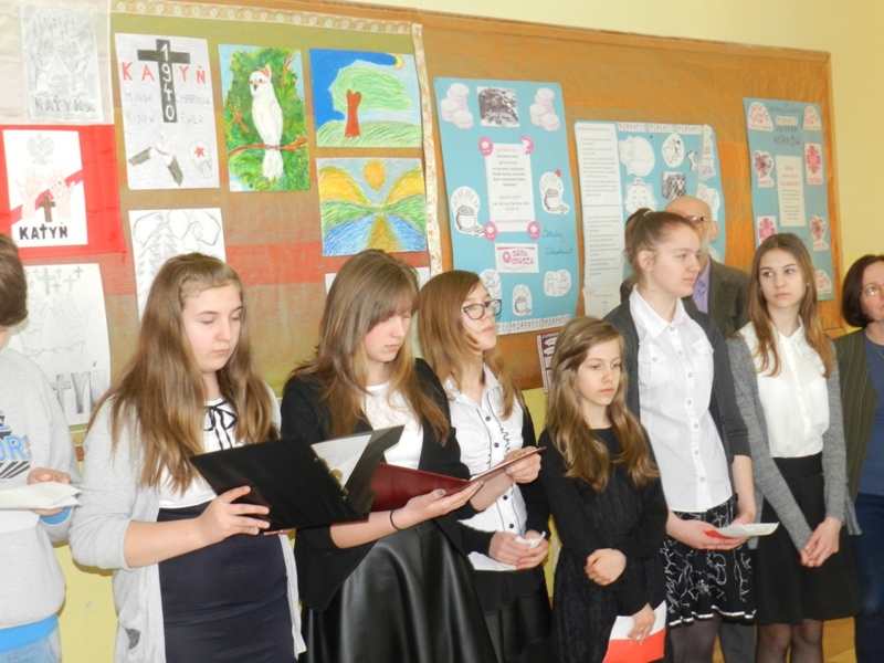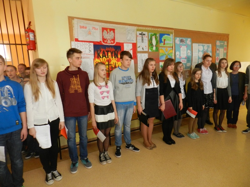 Dnia 13 kwietnia 2015 roku uczniowie naszego gimnazjum oraz klasy szóstej, uczestniczyli w uroczystym apelu. Tematem spotkania było upamiętnienie ofiar „Zbrodni Katyńskiej” w 75 rocznicę jej dokonania. W podniosłej atmosferze i skupieniu, uczestnicy uroczystości wysłuchali montażu poezji i tekstów komentarza historycznego, przybliżających te tragiczne wydarzenia.