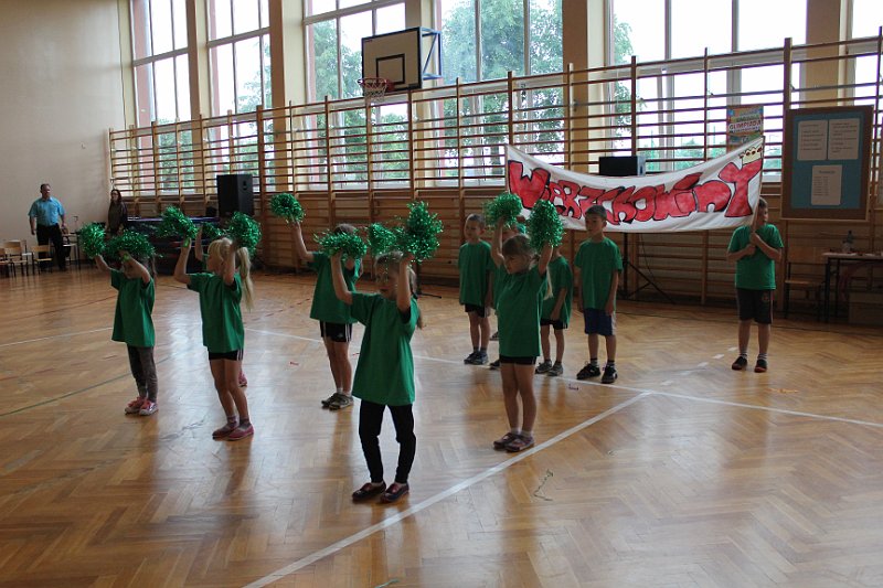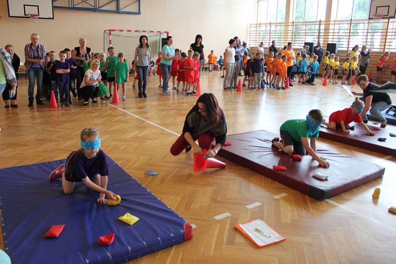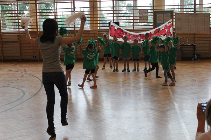 Następnie uczestnicy zmagali się w dziesięciu konkurencjach. Najciekawsze z nich to: bieg do szarfy, skoki w workach, wyścigi na piłkach i sztafeta. Nasza drużyna uzyskała trzeci wynik w punktacji całościowej (59 punktów). Taki sam wynik zdobyły dzieci z Jedlanki. W dogrywce z nimi minimalnie przegraliśmy. Pozostało nam czwarte miejsce, z którego też jesteśmy bardzo dumni.