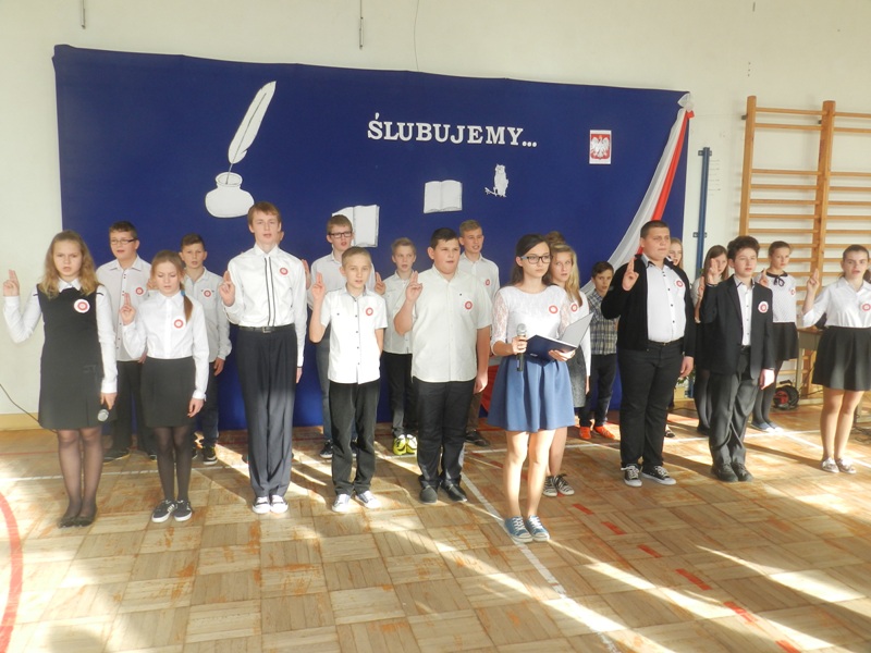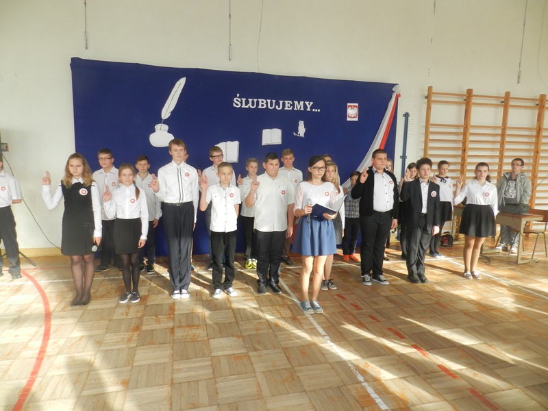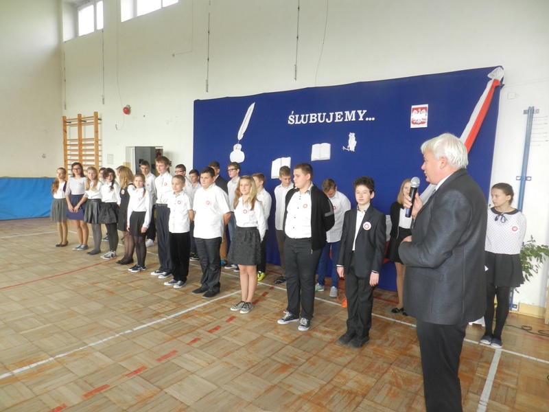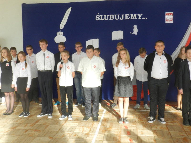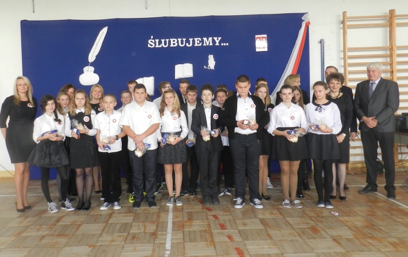 16 listopada odbyło się uroczyste ślubowanie klas pierwszych gimnazjum. Uczniowie przygotowali z tej okazji występ artystyczny pod kierunkiem wychowawców p. Małgorzaty Koperskiej oraz p. Agaty Pawluczyk. Nie zabrakło piosenek oraz wierszy. Na ślubowanie przybyli Dyrektor Publicznego Zespołu Szkół w Wierzchowinach Pani Dyrektor Dorota Dobosz, Wicedyrektor Zespołu Szkół Publicznych w Wierzchowinach Pani Justyna Turzyńska, Sekretarz Gminy Jedlińsk Pan Andrzej Pawluczyk, Przewodnicząca Rady Gminy Jedlińsk Pani Aneta Żurowska, Radny Gminy Jedlińsk Pan Marcin Drewnowski, Przewodnicząca Rady Rodziców Pani Edyta Kozak, członkowie Stowarzyszenia „Czas na zmiany”, wszyscy uczniowie gimnazjum, pracownicy szkoły oraz rodzice. Rada Rodziców oraz Władze Gminy ufundowali upominki dla uczniów. Po uroczystości nasi pełnoprawni uczniowie udali się na słodki poczęstunek przygotowany przez rodziców.