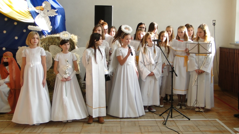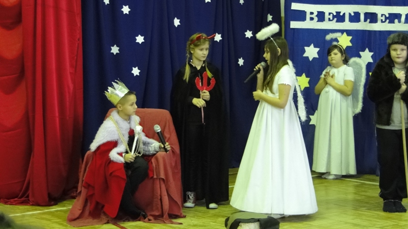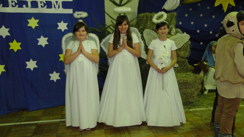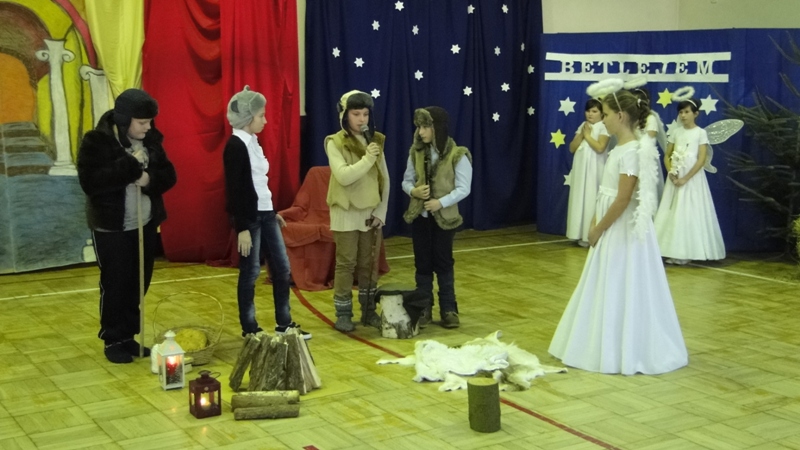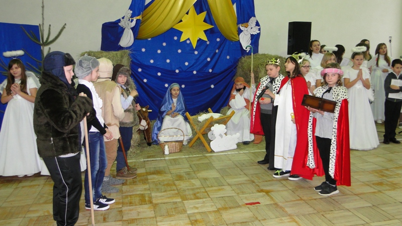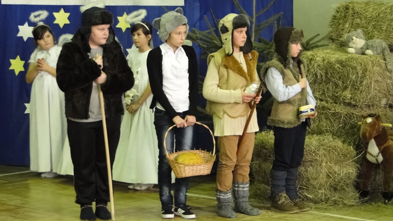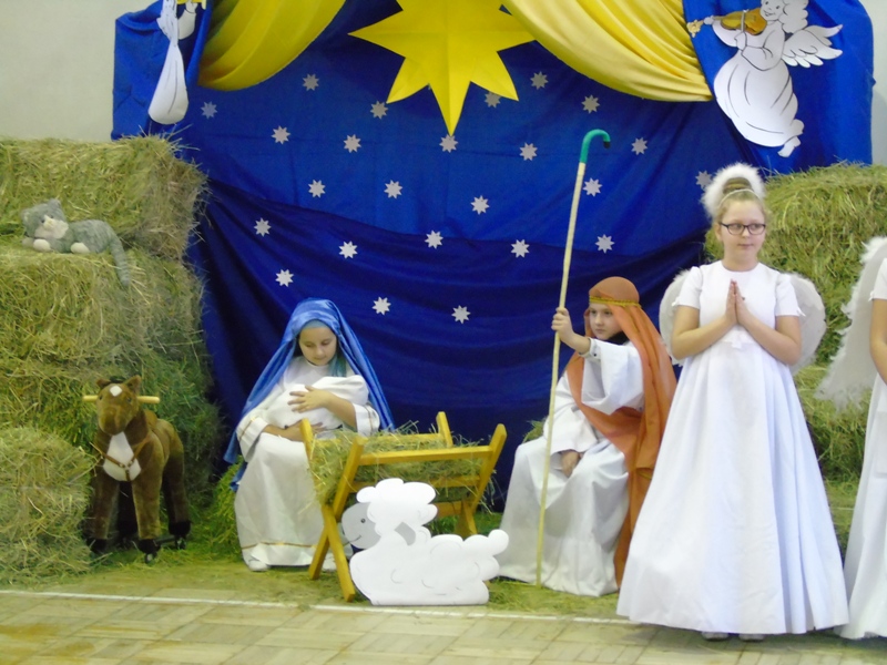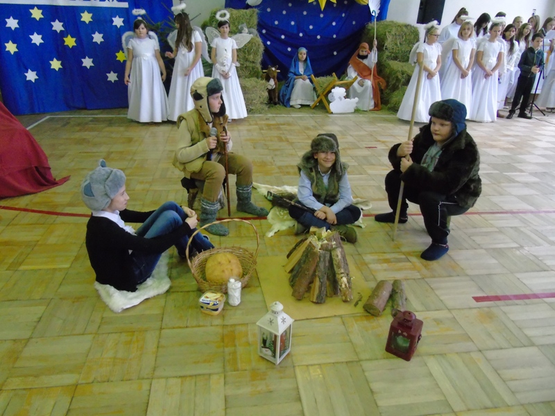 Pięknym zwyczajem naszej szkoły jest przygotowywanie jasełek, które przybliżają nam wydarzenia Betlejemskiej Nocy, wprowadzają w świąteczną atmosferę, pobudzają do refleksji. 13 grudnia 2015r. licznie zgromadzona publiczność, wśród której byli: Proboszcz ks. Janusz Chamera, Radni Gminy Jedlińsk: Pani Ewa Ofiara, Pan Marcin Drewnowski, Sołtys Pani Małgorzata Smyrda, Dyrektor GCKiKF Pani Agnieszka Gryzek oraz Pani Dyrektor Barbara Gąska, zgromadziła się w sali gimnastycznej ZSP im. Kardynała Stefana Wyszyńskiego w Wierzchowinach. Wszystkich serdecznie powitała Pani Dyrektor Dorota Dobosz oraz Pani Jadwiga Gut Prezes Stowarzyszenia „Czas na zmiany”. Następnie uczniowie zaprezentowali Jasełka Bożego Narodzenia, w których spróbowali raz jeszcze przybliżyć wszystko to, co przeżyła Maryja wraz z Józefem w czasie narodzin Bożego Syna. Przedstawienie było efektem wielotygodniowej pracy uczniów pod kierunkiem pani Beaty Czwarno i Patrycji Wieczorek. Główna akcja rozgrywała się w szopce, gdzie narodził się Jezus Chrystus. Wokół Maryi, Józefa i Dzieciątka krzątały się zastępy anielskie, a zwierzęta trzymały straż. Przywitać Pana przybyli pasterze i Trzej Królowie. Nie zabrakło też scen z Herodem. Całość okraszona została przepięknym śpiewem wykonanym przez chór szkolny pod kierunkiem pani Justyny Turzyńskiej. Po zakończonym przedstawieniu uczniowie zaprezentowali swoje talenty wokalne w koncercie pastorałek. Artyści zostali nagrodzeni oklaskami i licznymi słowami uznania.