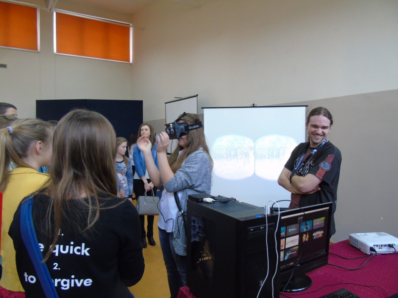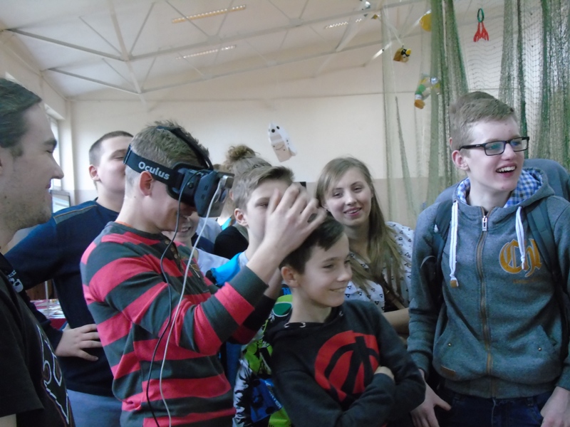 Uczniowie wkładając elektroniczne okulary podłączone do komputera, mogli wirtualnie przenosić przedmioty na statku kosmicznym. Na innych stanowiskach odbywali wędrówkę po amerykańskim miasteczku, czy też błądzili w labiryncie.