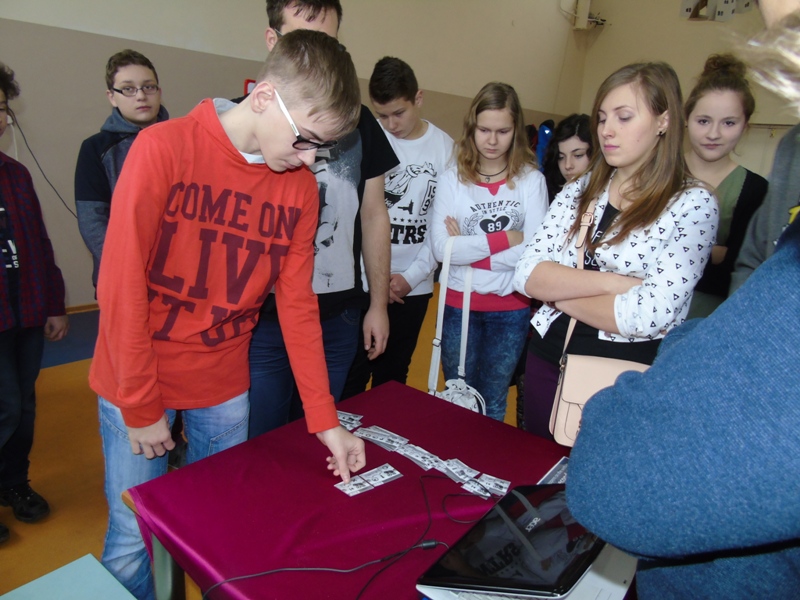 Również czekała na nich gra, w której trzeba było tak układać klocki, żeby popłynął prąd. Natomiast gra EduLego- „ fajna zabawka do logicznego myślenia” wprowadziła gimnazjalistów w świat programowania komputerowego.