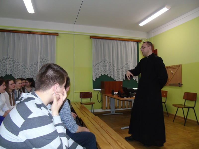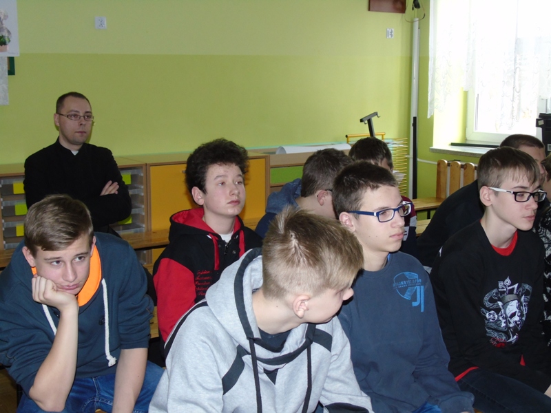 W dniu 3 marca 2016r. w ZSP im. Kardynała Stefana Wyszyńskiego odbyło sie spotkanie o charakterze profilaktycznym z Ks. Dariuszem Frydrychem - wychowawcą w Ośrodku dla Nieletnich. Celem spotkania było przedstawienie młodzieży jak dokonywać właściwych wyborów we własnym życiu. Podczas spotkania była projekcja filmu pt. ,,Nawrócenie'' następnie odbyła się pogadanka nawiązująca do właściwych postaw, zachowań i czynów.