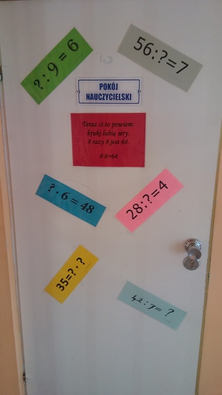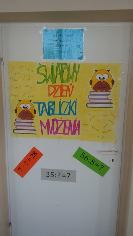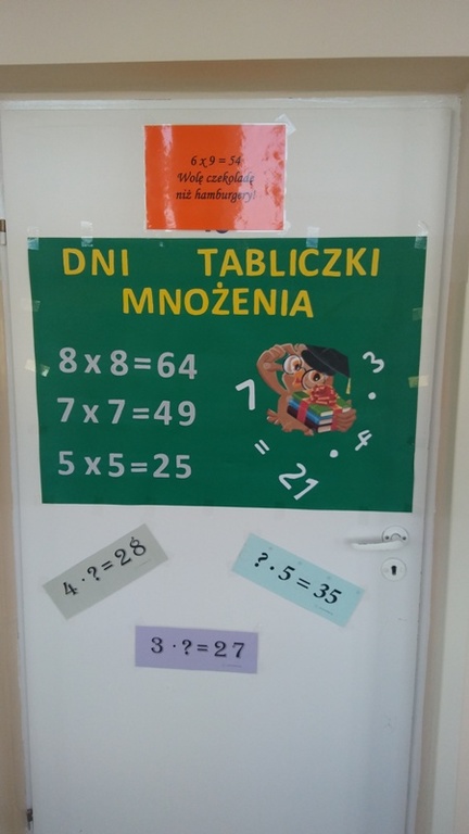 W naszej szkole już od poniedziałku trwają przygotowania, podczas których dzieci dekorują szkolne korytarze i przypominają sobie tabliczkę mnożenia. W piątek 30 września nastąpi sprawdzenie „tabliczkowej wiedzy” podczas egzaminów. Nauczyciele matematyki sprawdzą wiedzę uczniów na lekcjach, natomiast na przerwach uczniowie staną się egzaminatorami i sprawdzą znajomość tabliczki mnożenia u dorosłych.