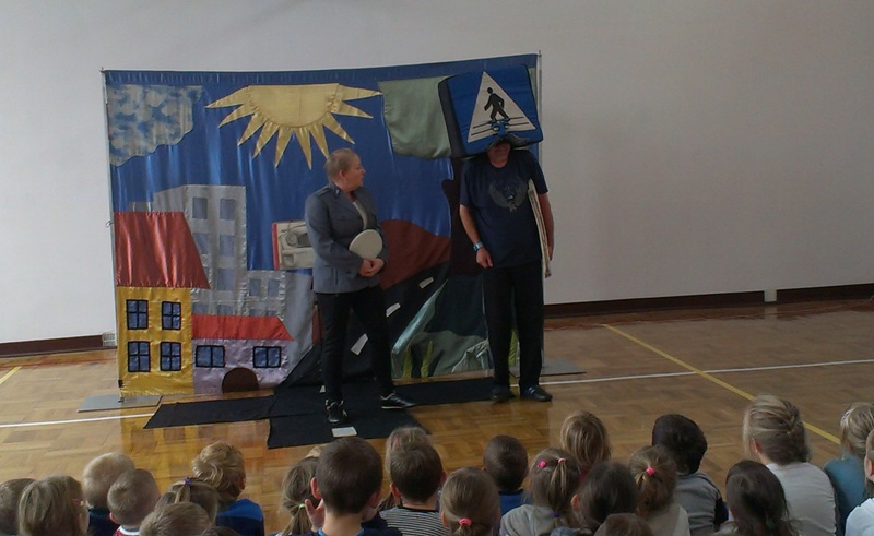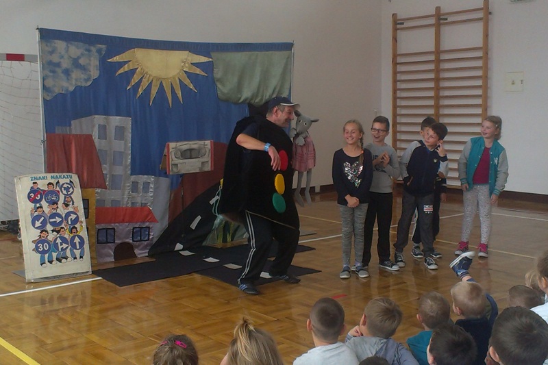 24 października br. odbyło się w naszej szkole przedstawienie teatralne pt. „Uwaga! Zebra z pasów zbiegła”. Niesforna tytułowa bohaterka zebra oraz jej przyjaciel „Syguś” - sygnalizator świetlny wraz z Myszką Nornicą opowiadali dzieciom jak należy bezpiecznie poruszać się na drodze. Bohaterowie przypomnieli dzieciom zasady przechodzenia na drugą stronę ulicy, jak poruszać się po jezdni, gdy nie ma chodnika oraz jak ważne są elementy odblaskowe na ubraniach wieczorową porą.Dzieci nagrodziły aktorów gromkimi brawami.