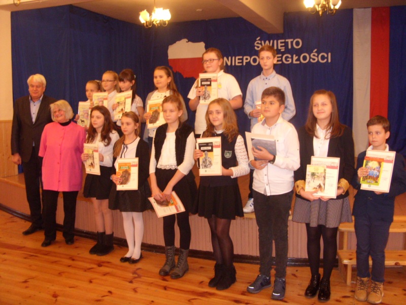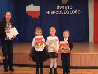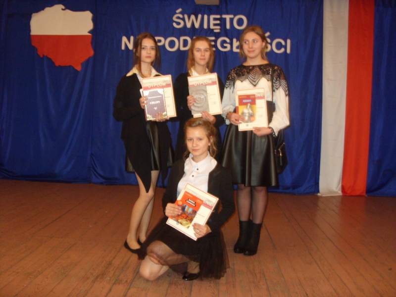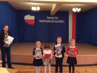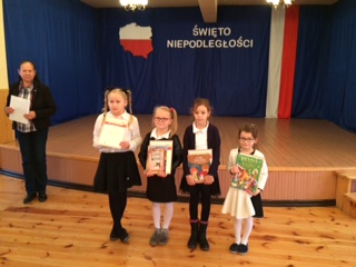 Konkurs organizowany przez GCKiKF w Jedlińsku służy popularyzacji polskiej poezji i rozbudzaniu wrażliwości na jej piękno. Wielką dojrzałością w głosowym opracowaniu utworów patriotycznych wykazali się uczniowie reprezentujący Zespół Szkół Publicznych w Wierzchowinach. W kategorii przedszkole zaszczytne I miejsce zajął Wojciech Kowalczyk, a wyróżnienie otrzymała Nikola Boryczka. W kategorii klasy I - III szkoły podstawowej I miejsce zdobyła Ilona Murawska z klasy I, a wyróżnienie – Cezary Cielniak z klasy III. W kategorii wiekowej klasy IV – VI wyróżniona została Aleksandra Kobza. Weronika Bednarczyk - uczennica klasy III b gimnazjum- zachwyciła wszystkich wzruszającą deklamacją wiersza „Pieśń o fladze” i zdobyła I miejsce. Paulina Prygiel z klasy IIIa zajęła II miejsce, a wyróżnienia otrzymały: Weronika Potera z III a oraz Oliwia Boryczka z klasy I b. Wszystkim nagrodzonym serdecznie gratulujemy! Do konkursu recytatorskiego uczniów przygotowały panie: Ilona Kolbus, Anna Maj- Imiołek, Aneta Adamczyk, Bogusława Rozborska, Elżbieta Lao, Patrycja Wieczorek, Małgorzata Zegarek.