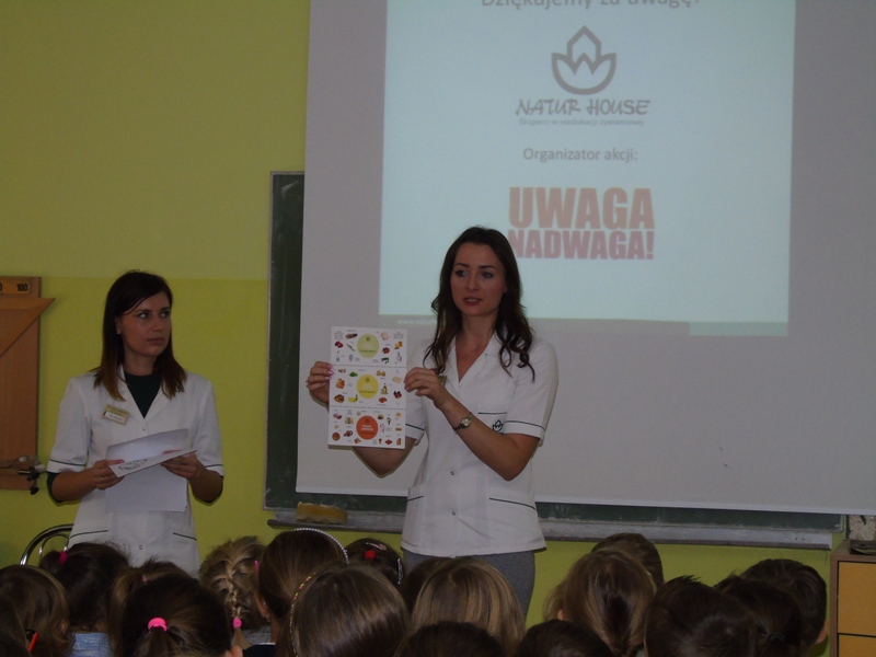 W ramach V edycji Ogólnopolskiej Akcji Walki z Nadwagą w Rodzinie” UWAGA NADWAGA” 22 listopada bieżącego roku gościliśmy w naszej szkole specjalistki w reedukacji żywieniowej z Centrum Dietetycznego Naturhouse z Kozienic- p. Emilię Marud i p. Ewę Szczygieł.