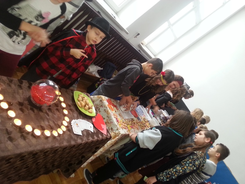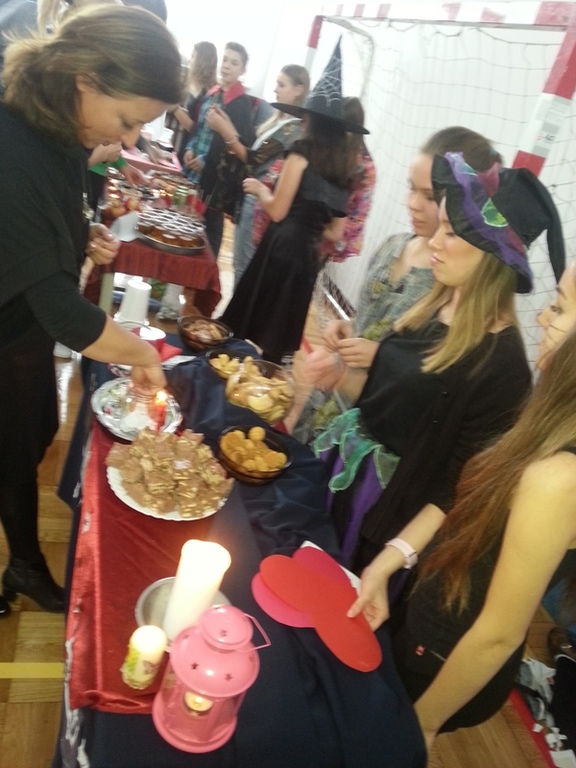 Po poczęstunku przyszedł czas na wróżby. Choć wszyscy traktowali je z lekkim przymrużeniem oka, to cieszyły się one ogromnym zainteresowaniem. Mogliśmy dowiedzieć się co czeka nas w niedalekiej przyszłości, poznać imię swego wybranka oraz zawód jaki będziemy wykonywać. Następnie rozpoczęły się konkursy nagradzane drobnymi upominkami. Wzbudzały one wiele pozytywnych emocji i uśmiechu. Tegoroczne andrzejki można uznać za udane. Miłą pamiątką będą fotografie wykonane podczas ,,wieczoru wróżb”.