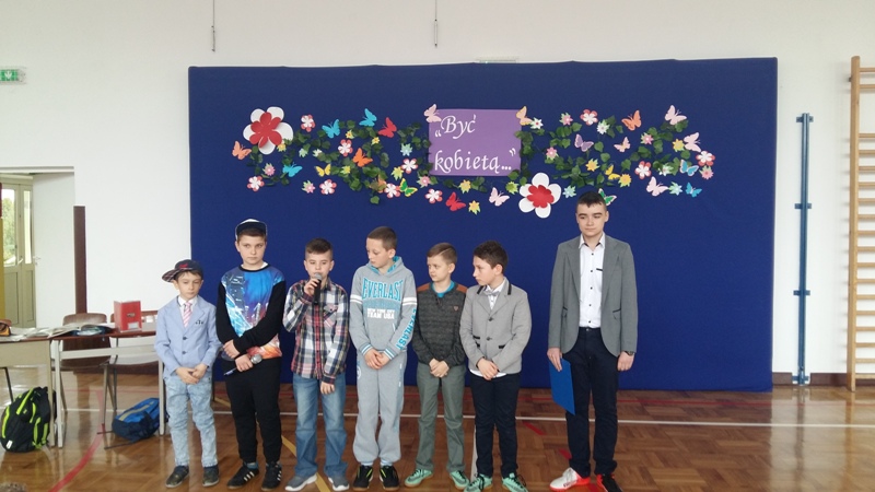 8 marca to dzień, w którym wszystkie panie obchodzą swoje święto. Z tej to okazji w naszej szkole odbył się uroczysty apel w wykonaniu uczniów klasy IV – VI pod kierunkiem panów: Pawła Kokoszy, Artura Sułka i Mariusza Turka. Zuzia Konopka i Zuzia Król przypomniały nam stare, lecz wiecznie żywe przeboje o kobietach. Niewątpliwie gwiazdą uroczystości okazał się Cezary Cielniak z III klasy, który zaprezentował piosenkę Renaty Przemyk „Babę zesłał Bóg” link. Na zakończenie złożono wszystkim kobietom i kobietkom życzenia, by rozlewały swój czar, rozjaśniały mrok oraz promieniały blaskiem swego piękna, czułości i wrażliwości nie tylko w dniu ich święta, ale przez cały rok. Dzień ten upłynął w przyjemnej atmosferze.