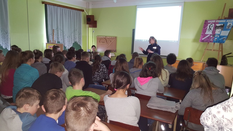 Uczniowie z dużym zainteresowaniem wysłuchali prelekcji dotyczącej skutków zdrowotnych oraz odpowiedzialności karnej zażywania narkotyków, dopalaczy, alkoholu. Funkcjonariuszki policji uświadamiały i przestrzegały również młodzież przed często bardzo drastycznymi skutkami Cyberprzemocy, w tym hejtu w Internecie.