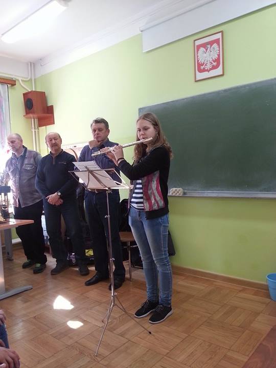 Uczniowie szkoły podstawowej uczestniczyli w ciekawych warsztatach muzycznych przygotowanych przez członków Orkiestry Dętej przy Ochotniczej Straży Pożarnej w Jedlińsku . Panowie odwiedzili naszą szkołę dnia 28 marca. zaprezentowali instrumenty dęte drewniane i blaszane. Uczniowie mieli możliwość usłyszenia brzmienia trąbki czy saksofonu i sami próbowali wydobyć z nich dźwięk. Dzięki instrukcjom muzyków wielu uczniom udało się wykonać to dość trudne zadanie. Wszyscy byli zadowoleni, może kiedyś nasi uczniowie także zagrają w orkiestrze dętej.