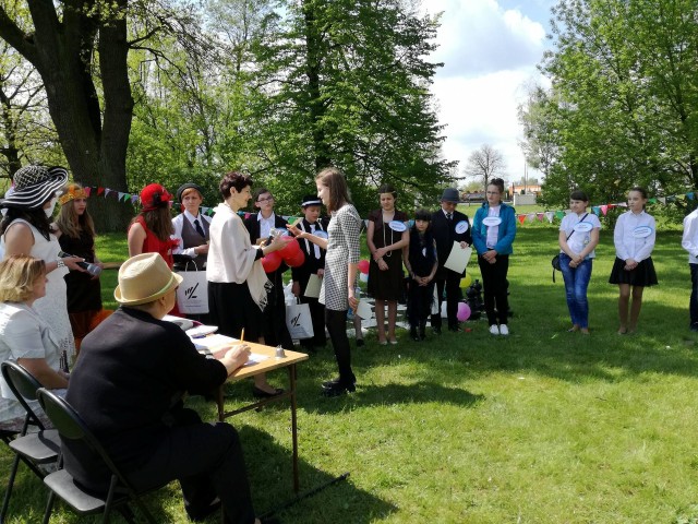 Uczniowie klas V i VI oraz gimnazjaliści wzięli udział w Gminnym Konkursie Wiedzy o Witoldzie Gombrowiczu. Pisząc test , musieli wykazać się znajomością dat, miejsc i osób związanych z pisarzem oraz wymienić tytuły jego dzieł . Zwycięzcami szkolnego etapu konkursu zostały uczennice klasy VI Aleksandra Kobza i Marta Trzeciak . W kategorii klas gimnazjalnych do etapu gminnego zakwalifikowali się: Kinga Rychel, Kacper Maj, Tomasz Gierasiński i Paulina Prygiel. Reprezentowali oni naszą szkołę w finale konkursu przeprowadzonego 16 maja w Muzeum Witolda Gombrowicza we Wsoli. Uczniów do konkursu przygotowały panie: Elżbieta Lao, Patrycja Wieczorek, Małgorzata Zegarek.