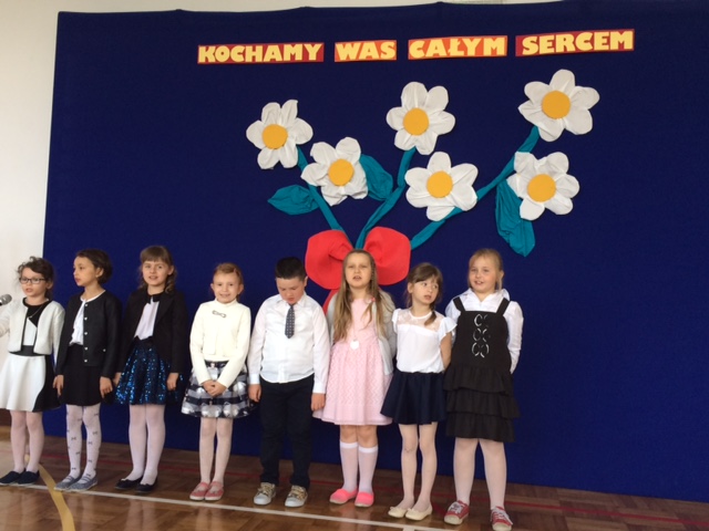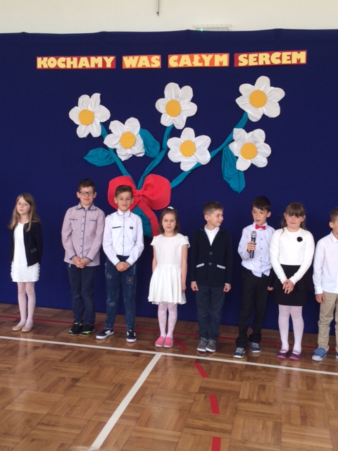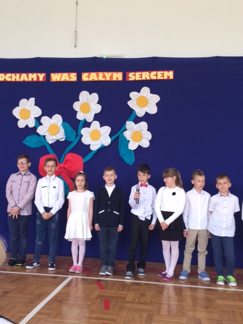 Rodzice z dumą i łzami w oczach przysłuchiwali się pięknej recytacji wierszy, która przeplatała się z wesołymi piosenkami. Akcentem wieńczącym całość spotkania było wspólne odśpiewanie przez dzieci ,,Sto lat”, które dedykowano rodzicom. Na zgromadzonych czekała nie tylko uczta duchowa. Całą uroczystość podsumowała Dyrektor Szkoły Pani Dorota Dobosz, dziękując gościom za przybycie, a dzieciom i nauczycielom za przygotowanie akademii.