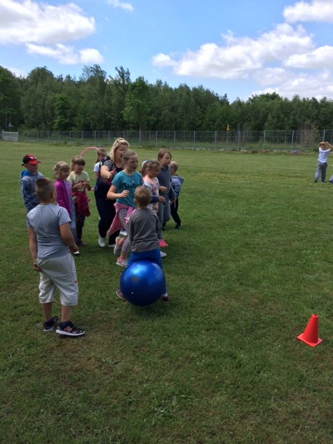 Dzień Dziecka w bieżącym roku szkolnym upłynął w duchu sportowym. Na początku Pani Dyrektor Dorota Dobosz złożyła wszystkim uczniom najserdeczniejsze życzenia z okazji ich święta i życzyła udanej zabawy. Następnie odbył się Turniej Piłki Nożnej i konkurencje indywidualne: skok po Kubusia, rzut beretem i konkurs żonglerki. W czasie przerwy w rozgrywkach sportowych dzieci skosztowałypysznych pączków ufundowanych przez Radę Rodziców.
