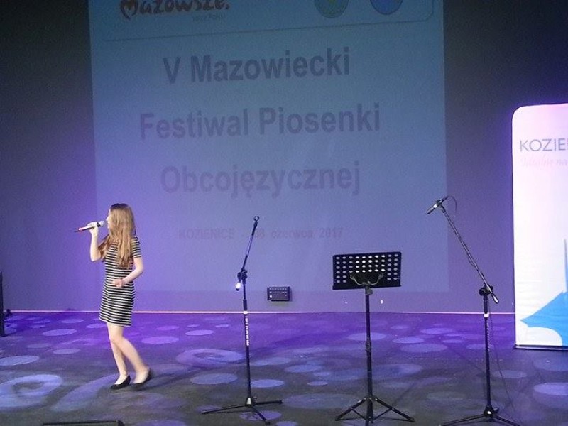 Na scenie Kozienickiego Domu Kultury im. Bogusława Klimczuka w dniu 8 czerwca 2017 r. odbyła się V edycja Mazowieckiego Festiwalu Piosenki Obcojęczycznej zorganizowanej przez Zespół Szkół Nr 1 im Legionów Polskich w Kozienicach przy wsparciu Kozienickiego Domu Kultury im Bogusława Klimczuka i MODN w Radomiu z siedzibą w Iłży. Naszą szkołę na festiwalu reprezentowały uczennice Zuzanna Król oraz Julia Czajka. Konkursowi towarzyszyła niepowtarzalna atmosfera. Wszyscy uczestnicy zaprezentowali bardzo wysokie umiejętności wokalne. Do konkursu uczennice przygotowały: Pani Agata Pawluczyk, Pani Justyna Turzyńska oraz Pani Milena Machnio.