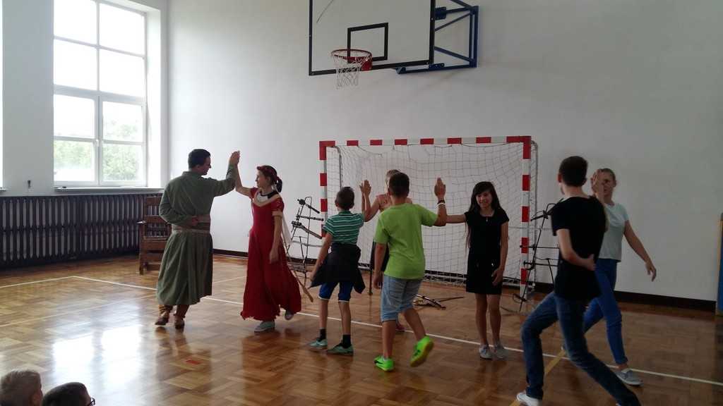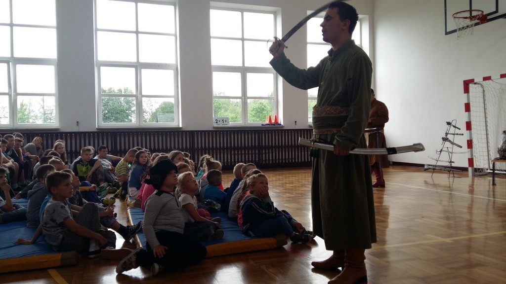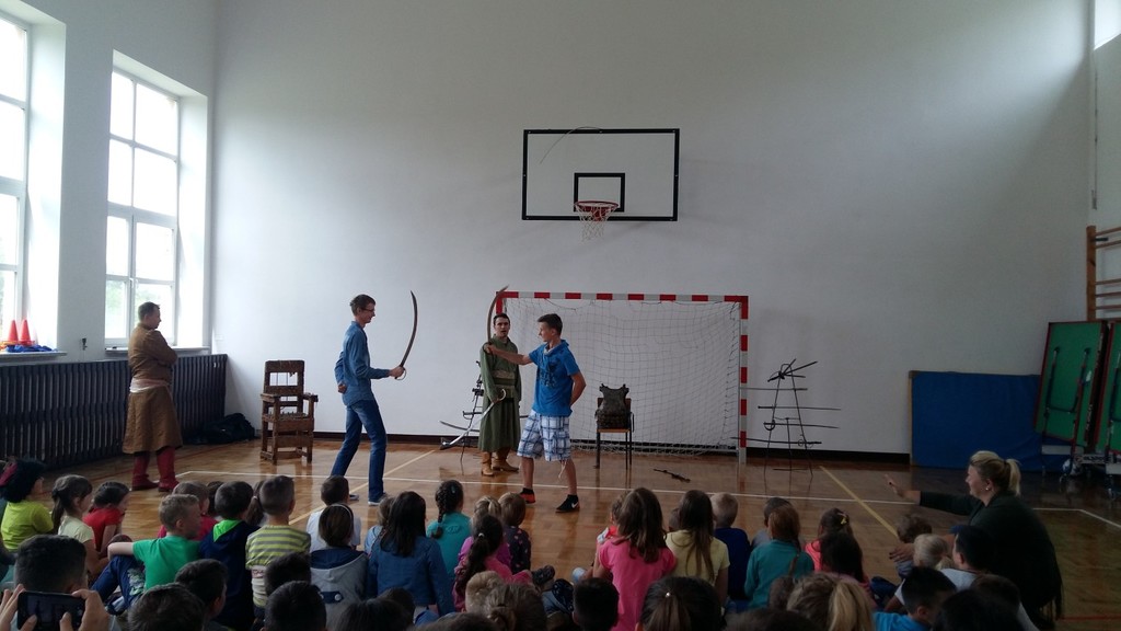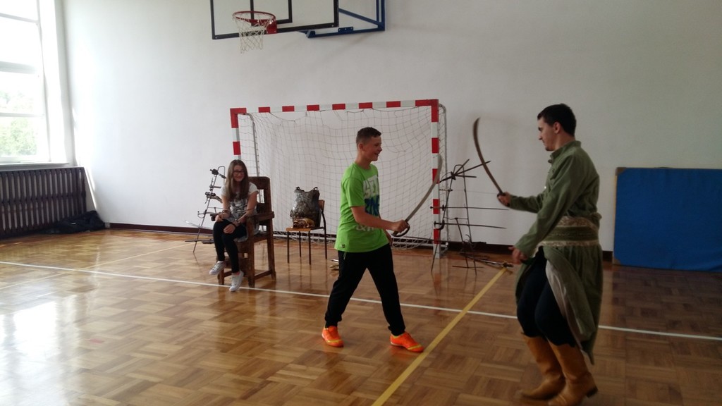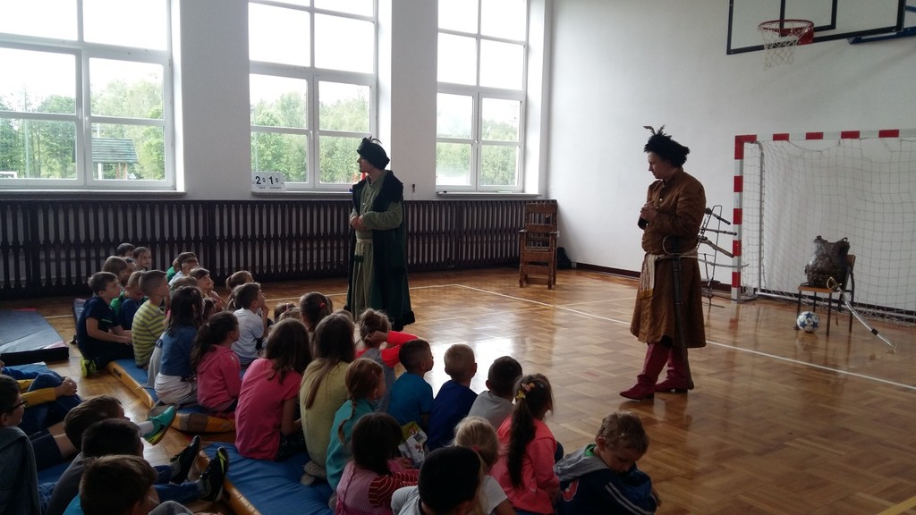 Dumni Sarmaci – to właśnie Oni zjawili się 07.06.2017r. w Zespole Szkół Publicznych im. Kardynała Stefana Wyszyńskiego w Wierzchowinach i dali wspaniały pokaz dla wszystkich uczniów szkoły. Szable świstały koło uszu, samopały strzelały na wiwat, a Panowie Bracia Sarmaci wznosili gromkie toasty pod wodzą samego Pana Szlachcica. A wszystko to w scenerii starannie odtworzonych strojów, realistycznie wykonanych szabel i rapierów. Walki na broń białą zmroziły wszystkim widzom krew w żyłach, a co dzielniejsi uczniowie sami mogli sprawdzić się w boju. Każdy z nich mógł wziąć szablę do ręki, przymierzyć strój rycerza, zasiąść na krześle tortur, czy dokładnie obejrzeć zbroję. Ta żywa i niezwykle barwna lekcja historii na długi czas zostanie w pamięci każdego uczestnika.
