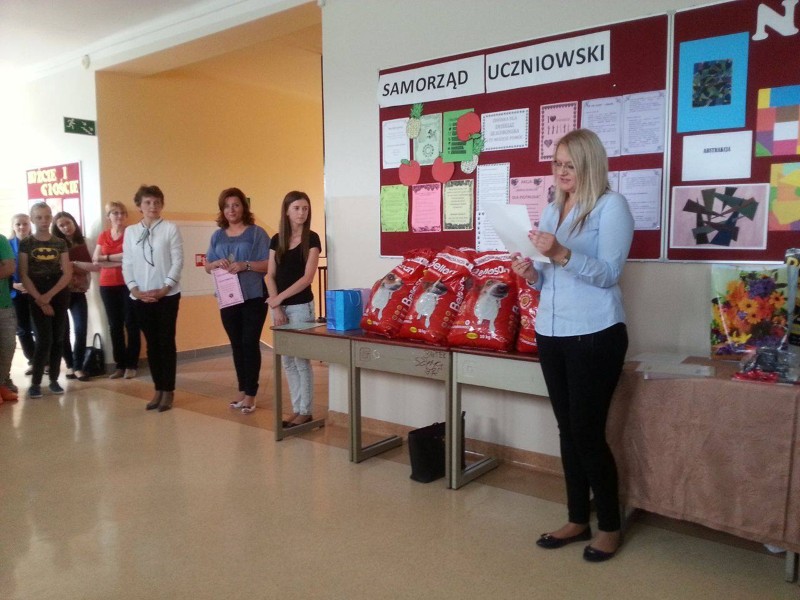 Akcja charytatywna "Złotóweczka dla pieseczka" zakończyła się wielkim sukcesem. Dla czworonogów ze schroniska w Urbanowie udało się zakupić 80kg karmy. 13 czerwca 2017r. odbył się apel podsumowujący akcję. Uczniowie otrzymali dyplomy i podziękowania. Bardzo się cieszymy, że młodzież z naszej szkoły z tak wielkim zaangażowaniem włączyła się w zbiórkę "złotóweczek", za które mogliśmy zakupić pokarm dla piesków. Akcję zorganizowały Pani Agata Pawluczyk, Pani Milena Machnio oraz Pani Kinga Filipiak.