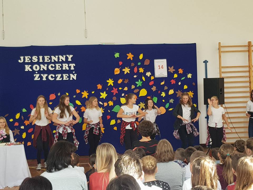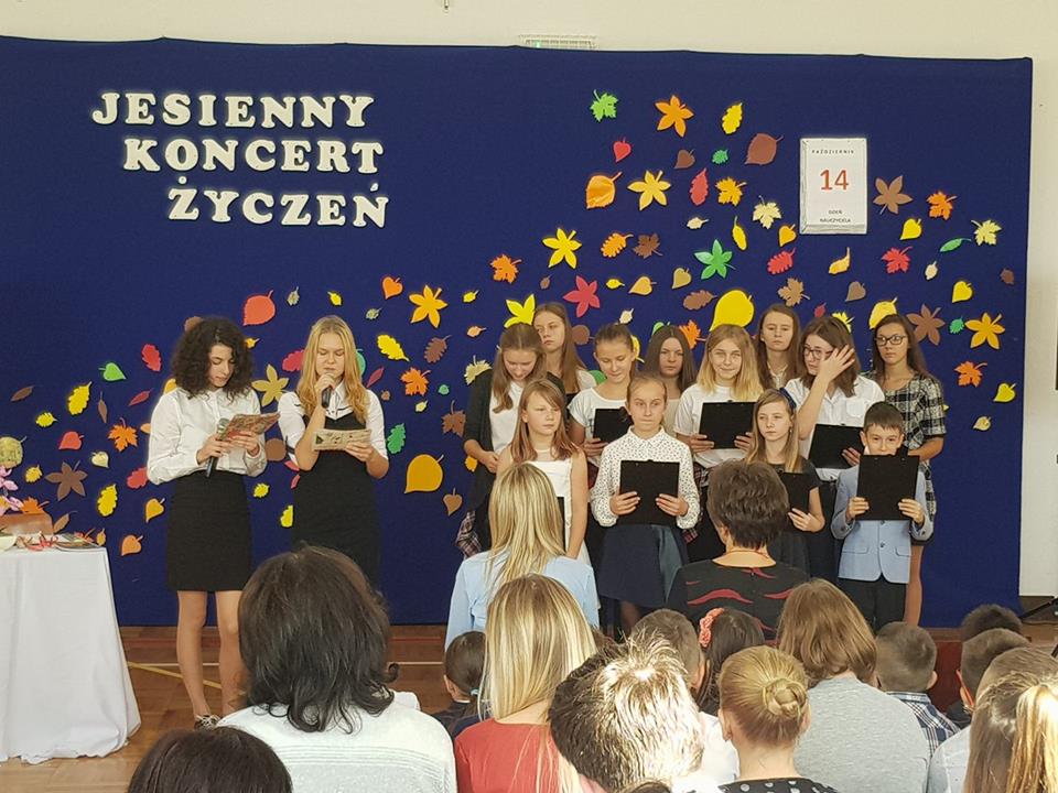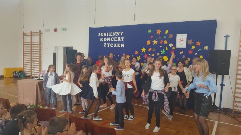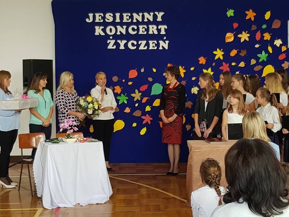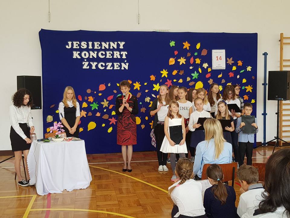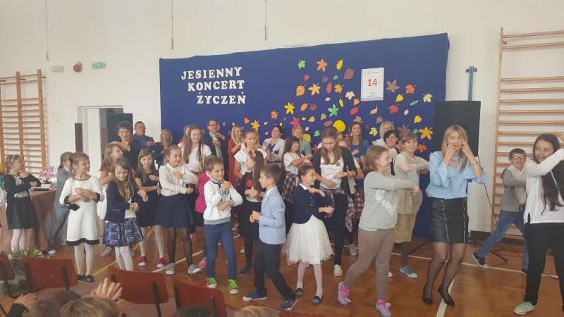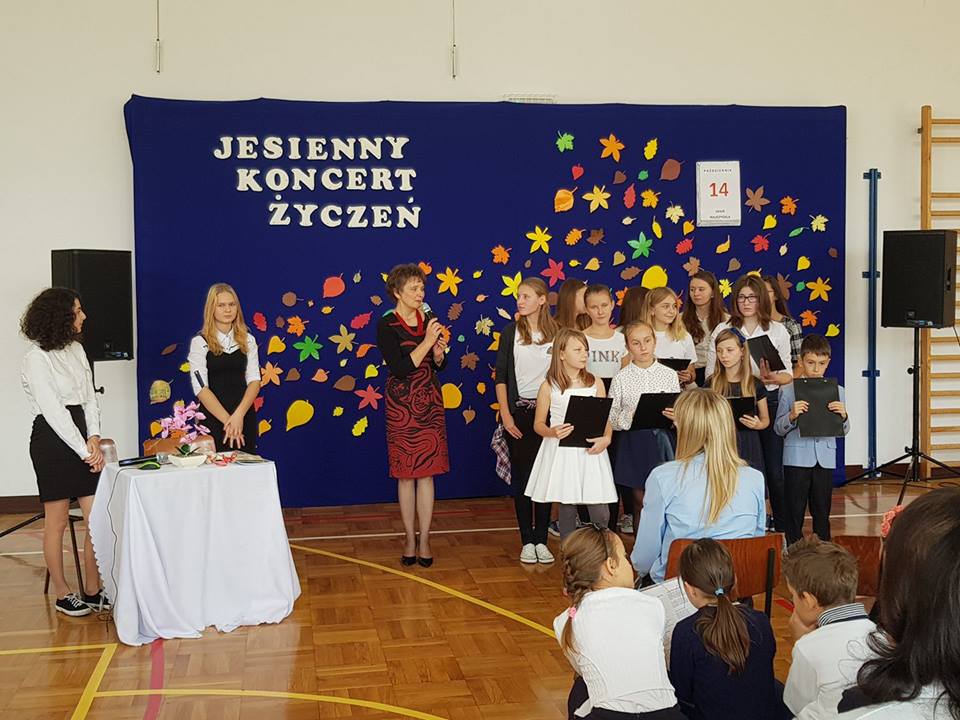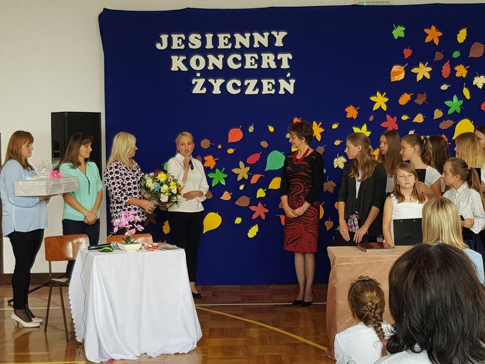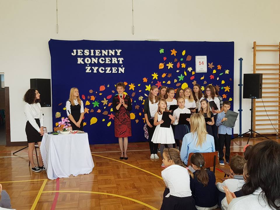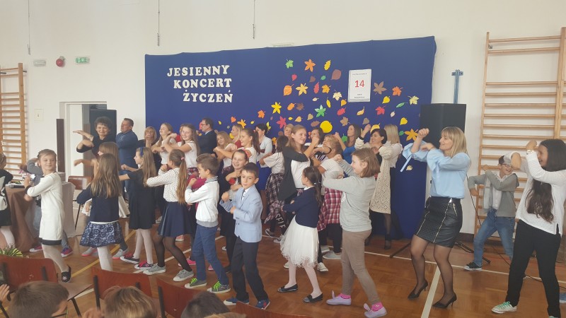 W piątkowe południe w Publicznej Szkole Podstawowej im. Kardynała Stefana Wyszyńskiego w Wierzchowinach odbył się „Jesienny koncert życzeń” dla nauczycieli oraz pracowników obsługi szkoły z okazji Dnia Edukacji Narodowej. Na zestaw upominkowy złożyły się wyjątkowe życzenia oraz nastrojowe piosenki nawiązujące do październikowego święta, a także dwa pełne energii układy taneczne. Przerywnikiem programu była zabawna reklama niezbędnych pomocy nauczycielskich, które pomogą w bezpiecznym prowadzeniu lekcji i pełnieniu dyżurów. Po części artystycznej nastąpiło uroczyste wręczenie nagród przyznanych przez panią Dyrektor Dorotę Dobosz nauczycielom i pracownikom szkoły. Przedstawiciele Rady Rodziców oraz Stowarzyszenia „Czas na Zmiany” przekazali na ręce pani Dyrektor Doroty Dobosz i pani Wicedyrektor Patrycji Wieczorek piękne kwiaty i upominki z najlepszymi życzeniami dla całego Grona Pedagogicznego. Tak w miłej atmosferze, w scenerii złotej jesieni minął piątek trzynastego października.