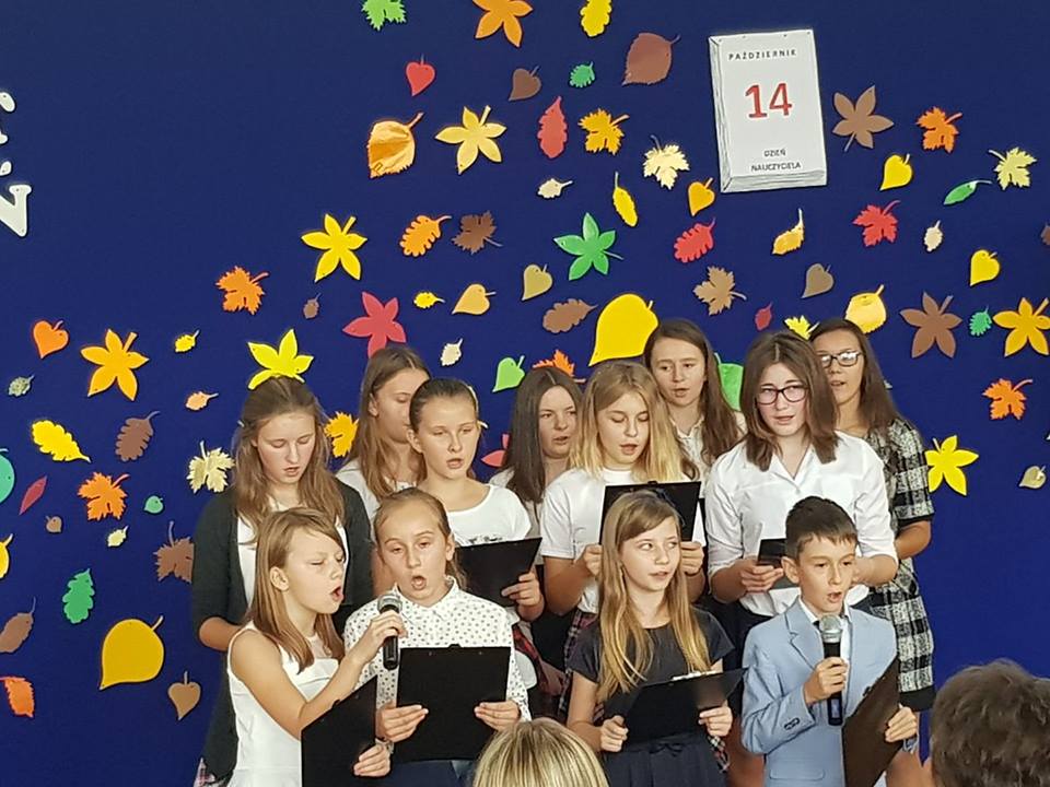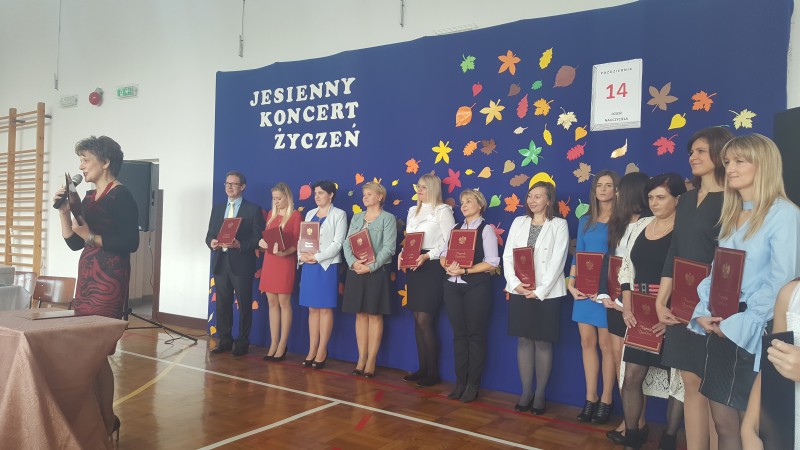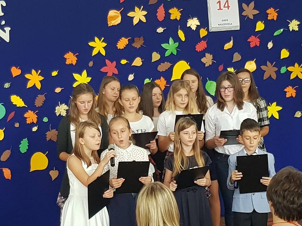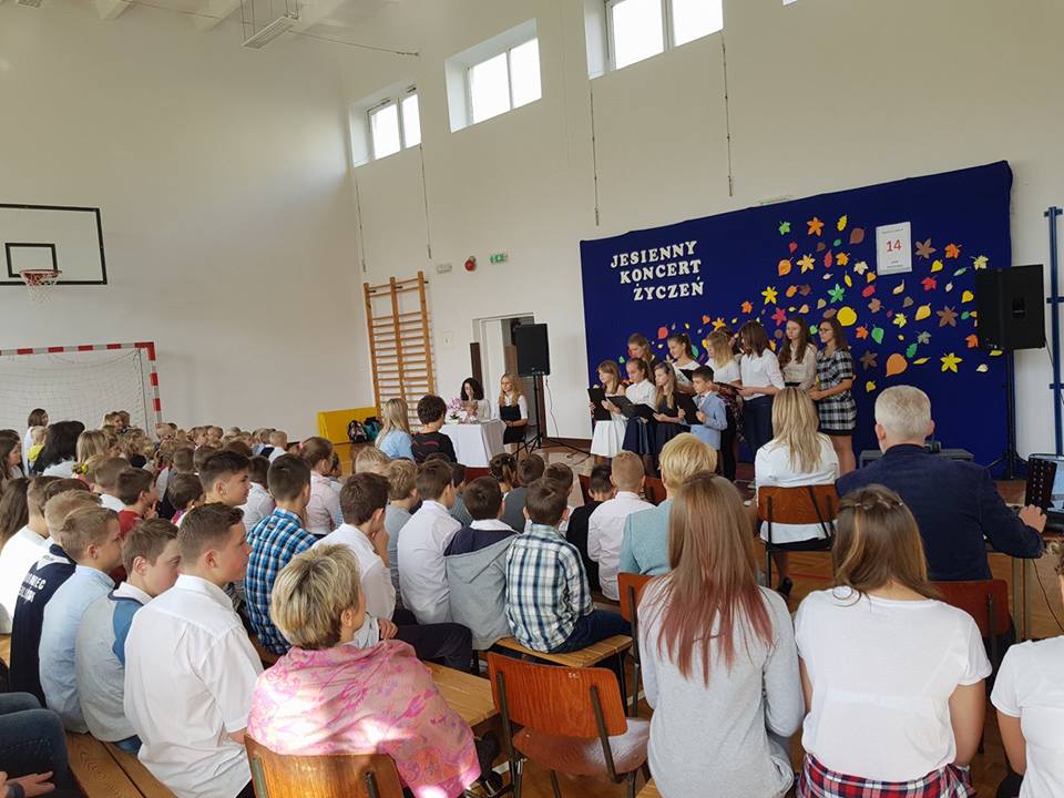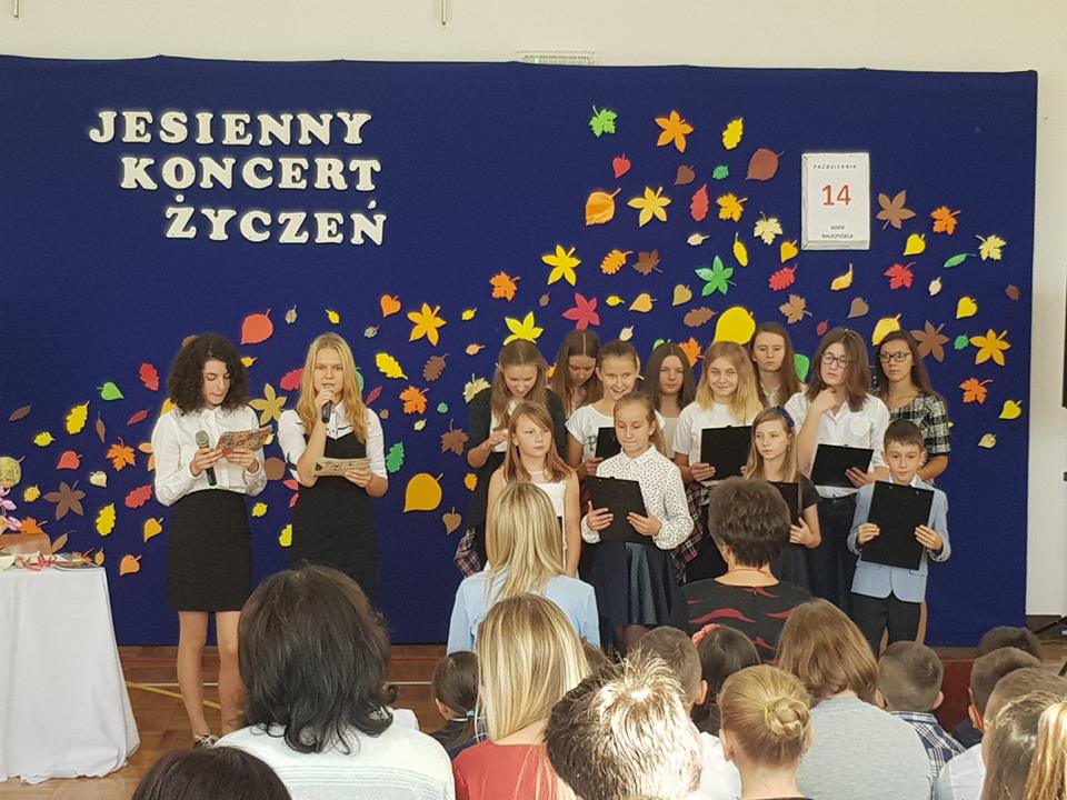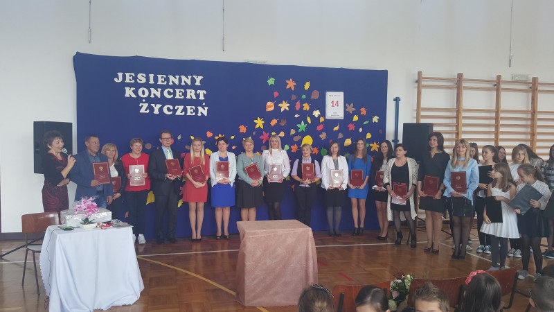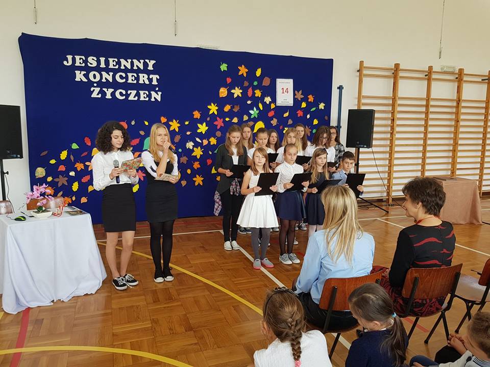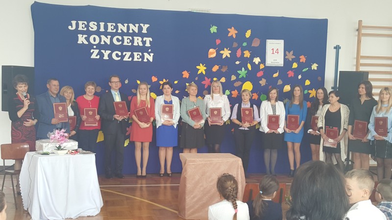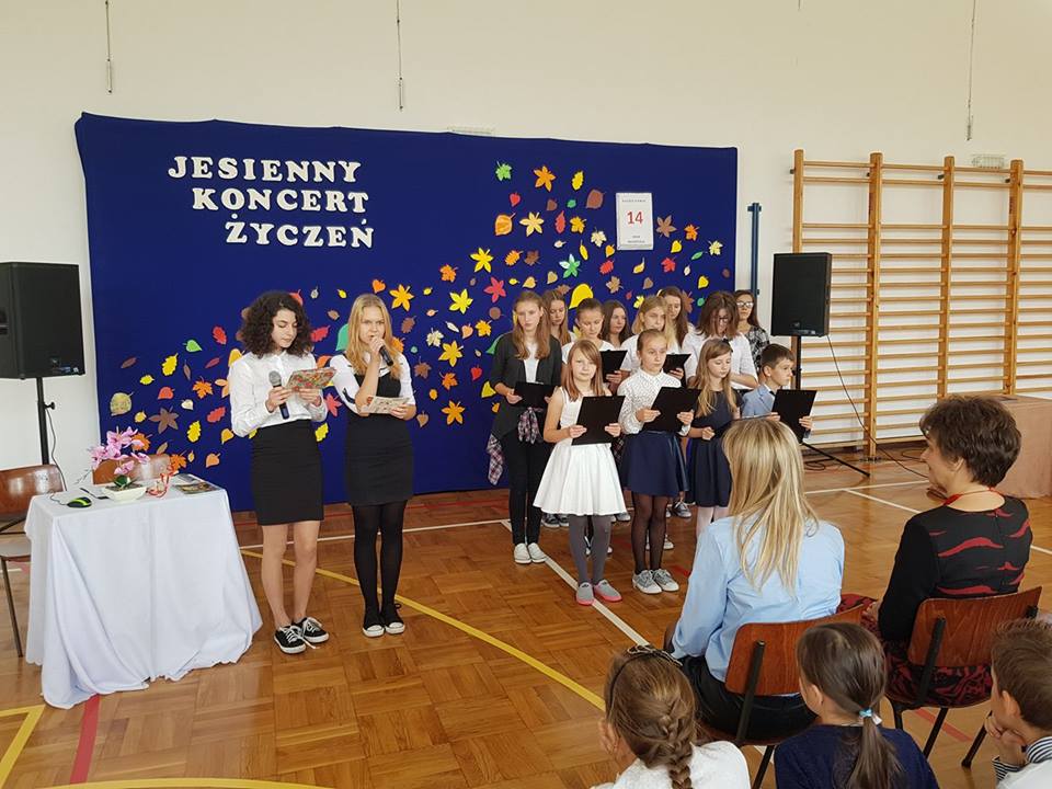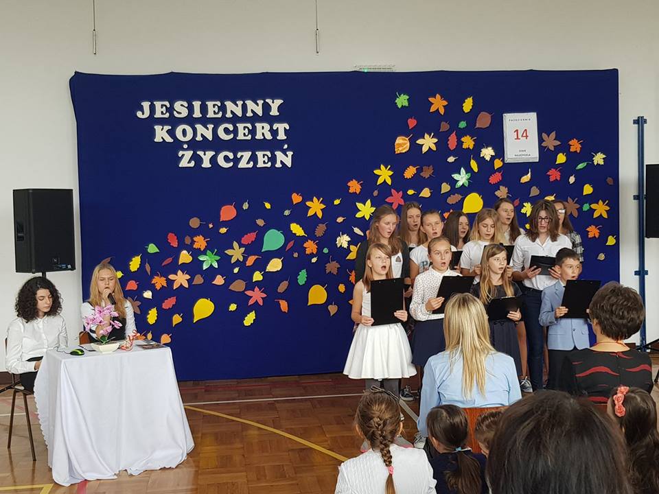 W piątkowe południe w Publicznej Szkole Podstawowej im. Kardynała Stefana Wyszyńskiego w Wierzchowinach odbył się „Jesienny koncert życzeń” dla nauczycieli oraz pracowników obsługi szkoły z okazji Dnia Edukacji Narodowej. Na zestaw upominkowy złożyły się wyjątkowe życzenia oraz nastrojowe piosenki nawiązujące do październikowego święta, a także dwa pełne energii układy taneczne. Przerywnikiem programu była zabawna reklama niezbędnych pomocy nauczycielskich, które pomogą w bezpiecznym prowadzeniu lekcji i pełnieniu dyżurów. Po części artystycznej nastąpiło uroczyste wręczenie nagród przyznanych przez panią Dyrektor Dorotę Dobosz nauczycielom i pracownikom szkoły. Przedstawiciele Rady Rodziców oraz Stowarzyszenia „Czas na Zmiany” przekazali na ręce pani Dyrektor Doroty Dobosz i pani Wicedyrektor Patrycji Wieczorek piękne kwiaty i upominki z najlepszymi życzeniami dla całego Grona Pedagogicznego. Tak w miłej atmosferze, w scenerii złotej jesieni minął piątek trzynastego października.