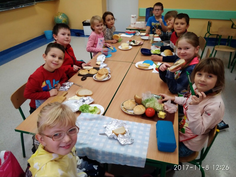 Podczas tego śniadaniowego święta przygotowaliśmy i spożyliśmy wspólny zdrowy posiłek. W akcji wspierali nas rodzice uczniów, którzy zaopatrzyli swoje pociechy w zdrowe produkty. Z wielkim zaangażowaniem dzieci przygotowały kolorowe i zdrowe kanapki, sałatki oraz szaszłyki owocowe.