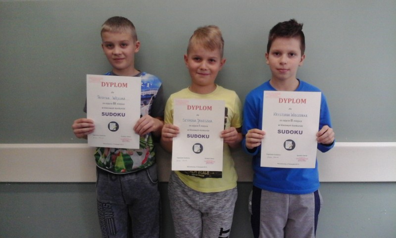 15 listopada odbył się konkurs, który wyłonił trójkę czwartoklasistów najlepiej radzących sobie z tą logiczną łamigłówką. Są to (w kolejności zdobytych miejsc): Szymon Janeczek, Krystian Wieczorek i Patryk Wójcik. Zwycięzcom gratulujemy!