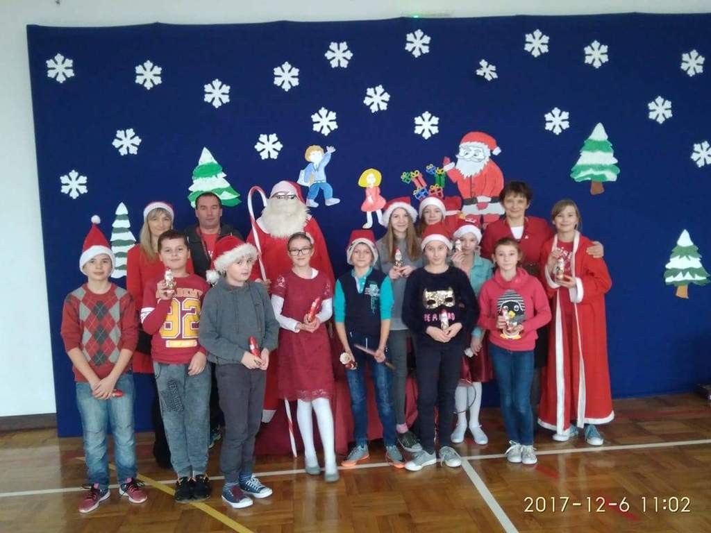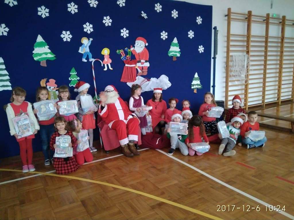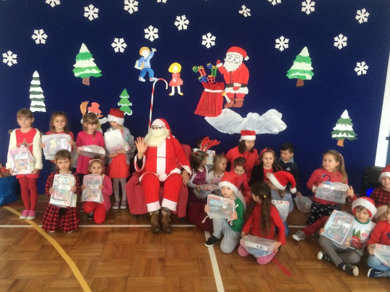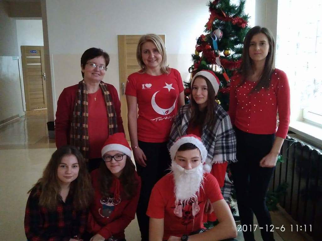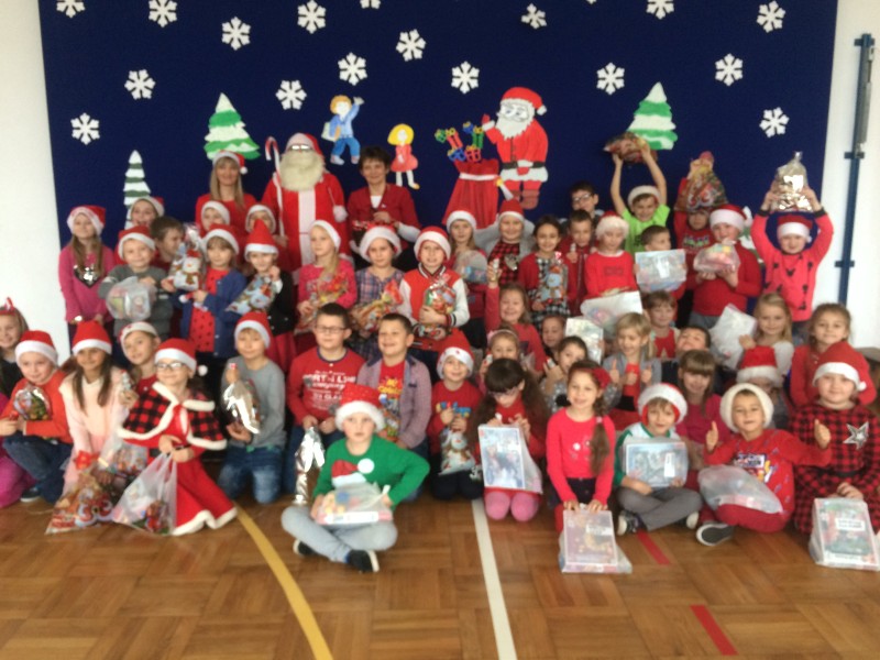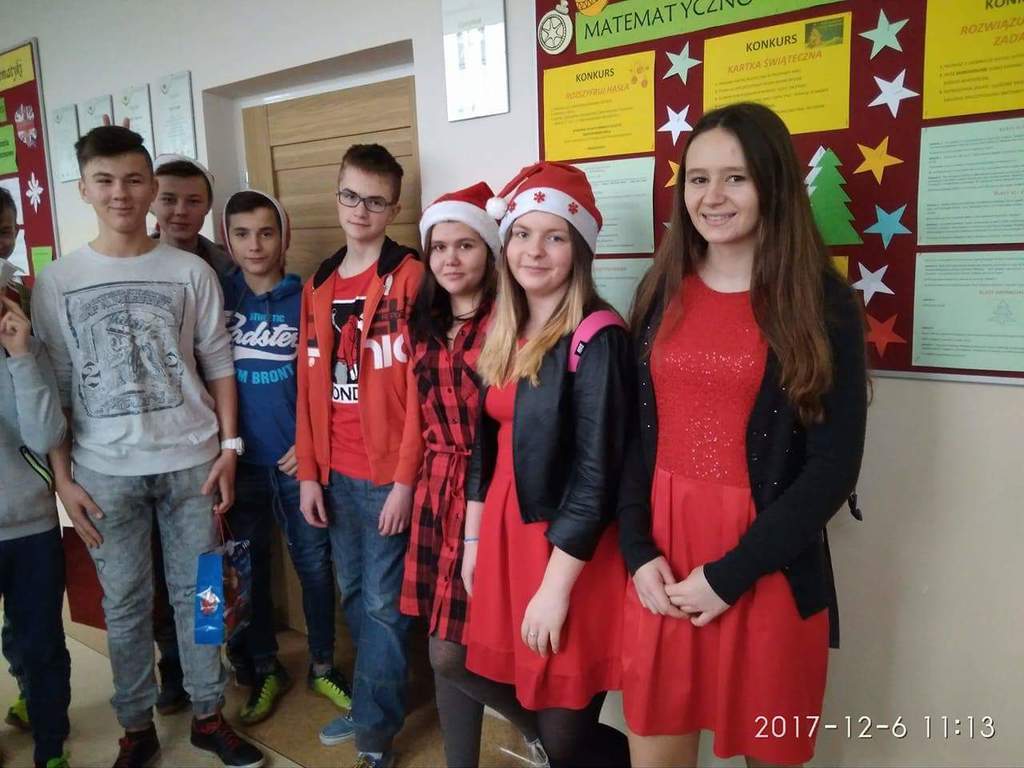 6 grudnia od samego rana korytarze i klasy wypełniły się uczniami, nauczycielami i pracownikami ubranymi na czerwono. W tym dniu bowiem naszą szkołę odwiedził Mikołaj. Niezwykły gość wraz z pomocnikami, czyli panią dyrektor Dorotą Dobosz i wicedyrektor Patrycją Wieczorek, obdarował dzieci i młodzież łakociami, a oni odpłacili się ślicznymi uśmiechami, piosenkami i wierszykami. Wszyscy obiecali, że będą grzeczni i postarają się nie sprawiać kłopotu swoim rodzicom ani nauczycielom. Był to naprawdę udany i niezapomniany dzień, który wprowadził nas w świąteczny nastrój. Czekamy już z niecierpliwością na przybycie Mikołaja w następnym roku.