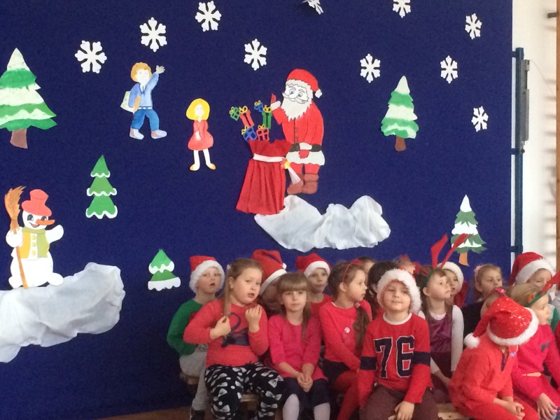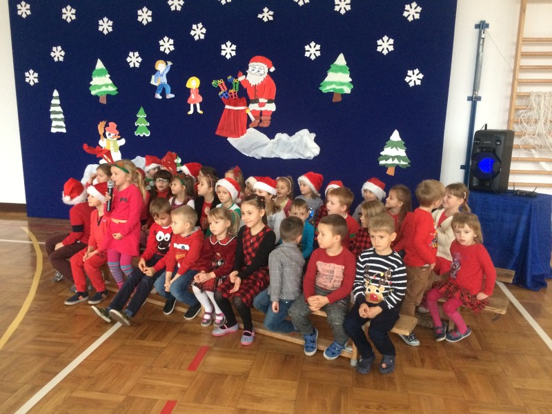 W środę 6 grudnia dzieci z oddziałów przedszkolnych pod kierunkiem swoich wychowawczyń przygotowały krótkie przedstawienie pt. „Czekamy na Mikołaja”, na które zaprosiły panią dyrektor Dorotę Dobosz, panią wicedyrektor Patrycję Wieczorek oraz rodziców. Na tle świątecznej dekoracji najmłodsze dzieci recytowały wierszyki i śpiewały piosenki. Ich artystyczny debiut bardzo spodobał się publiczności i został nagrodzony gromkimi brawami. Pani dyrektor Dorota Dobosz w swoim przemówieniu zachęciła małych artystów, aby sami byli Mikołajami dla bliskich, bo każdy może zostać Mikołajem. Spotkanie zakończyło się słodkim poczęstunkiem i wspólnym zdjęciem.