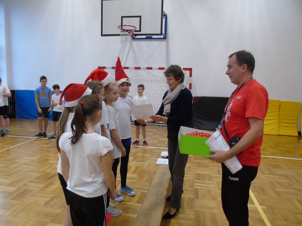 W czwartek 7 grudnia w naszej szkole odbył się już X Mikołajkowy Turniej Piłki Nożnej. Uczestniczyli w nim uczniowie klas III – VI szkoły podstawowej. Zarówno w kategorii dziewcząt, jak i chłopców zwyciężyły drużyny reprezentowane przez uczniów klasy VI. Nagrody dla najlepszych strzelców turnieju powędrowały do Magdaleny Piwowarczyk i Czarka Pomarańskiego z klasy VI. W rolę sędziów i organizatorów wcielili się nauczyciele wychowania fizycznego: Małgorzata Koperska i Paweł Kokosza. Dzięki pomocy Rady Rodziców (Świętego Mikołaja) wszyscy uczniowie zostali nagrodzeni drobnymi upominkami. Dziękujemy za udział i gratulujemy zwycięzcom.