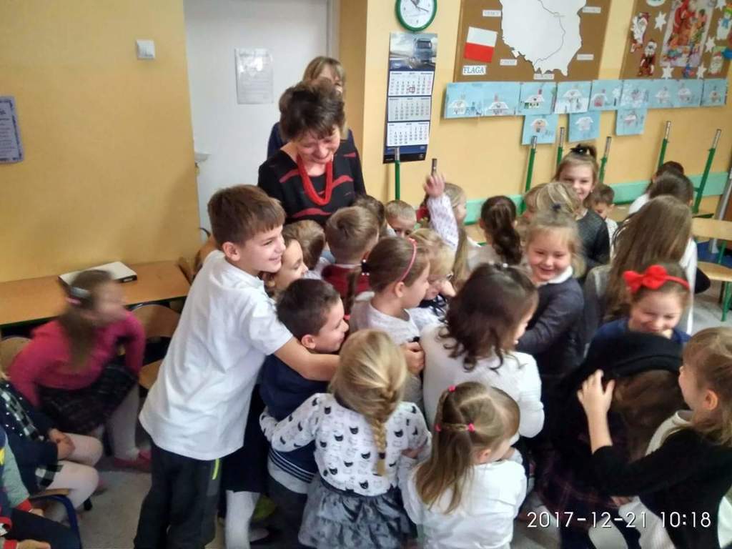 21 grudnia spotkaliśmy się na opłatku wigilijnym. Pani katechetka przybliżyła nam symbolikę Bożego Narodzenia. Na uroczystość przybyła Pani Dyrektor Dorota Dobosz, którą dzieci powitały spontanicznymi uściskami. Pani Dyrektor przyznała, że takie powitanie to najlepsze życzenia świąteczne.