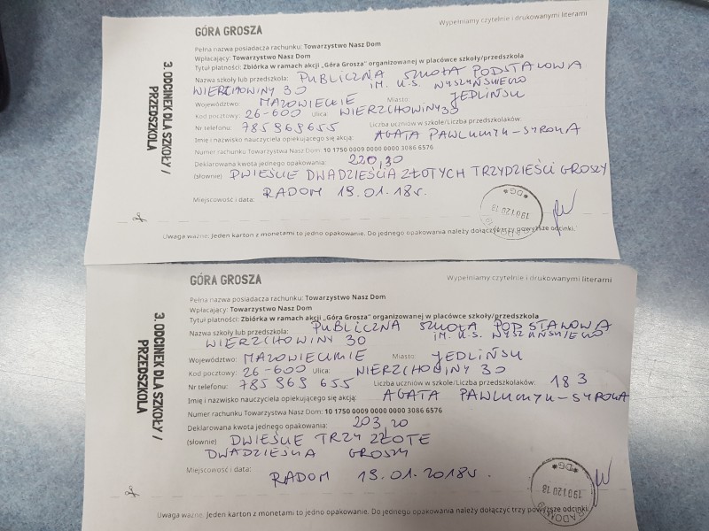 Wszystkim osobom zaangażowanym w powodzenie akcji oraz darczyńcom składamy serdeczne podziękowania.