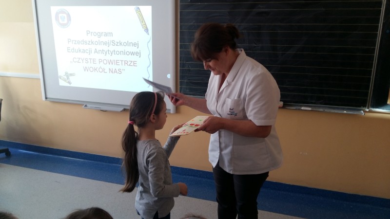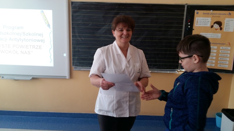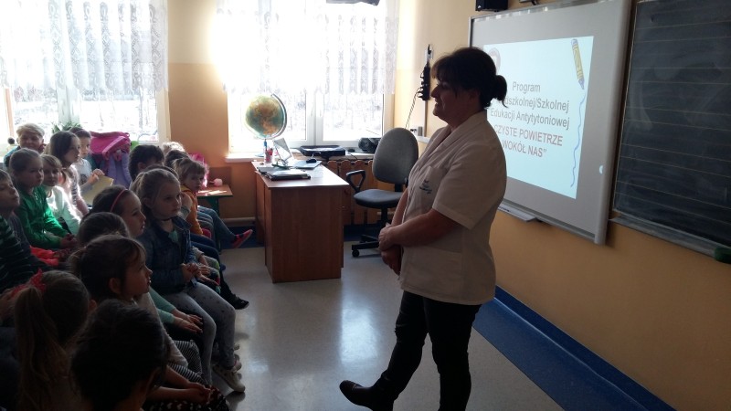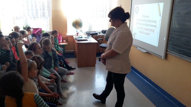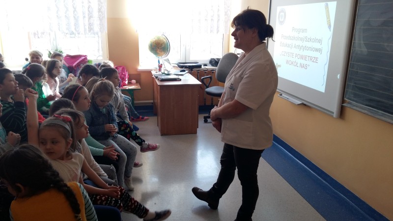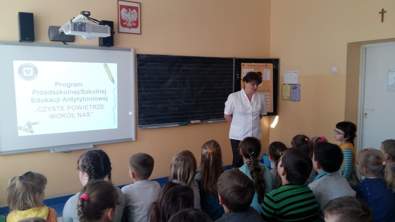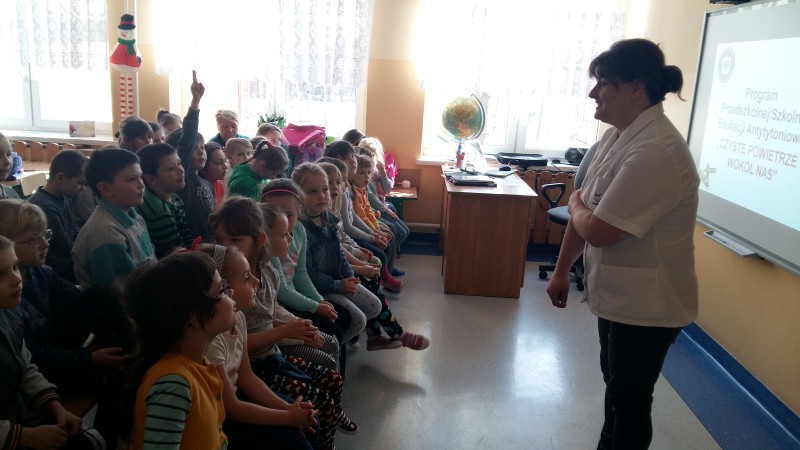 W naszej szkole 21 lutego odbyło się spotkanie z pielęgniarką z Ośrodka Zdrowia w Bierwcach panią Bogusławę Florek. Tematem przewodnim było „Czyste powietrze wokół nas”. Pani pielęgniarka przekazała cenne informacje o tym, co zanieczyszcza powietrze. Dzieci obejrzały również prezentację multimedialną, która zwiększyła ich wiedzę na temat skutków palenia papierosów, dzięki temu dowiedziały się, jak rozpoznać różne źródła dymów. Nauczyły się również, w jaki sposób zwrócić uwagę rodziców na szkodliwość dymu tytoniowego.