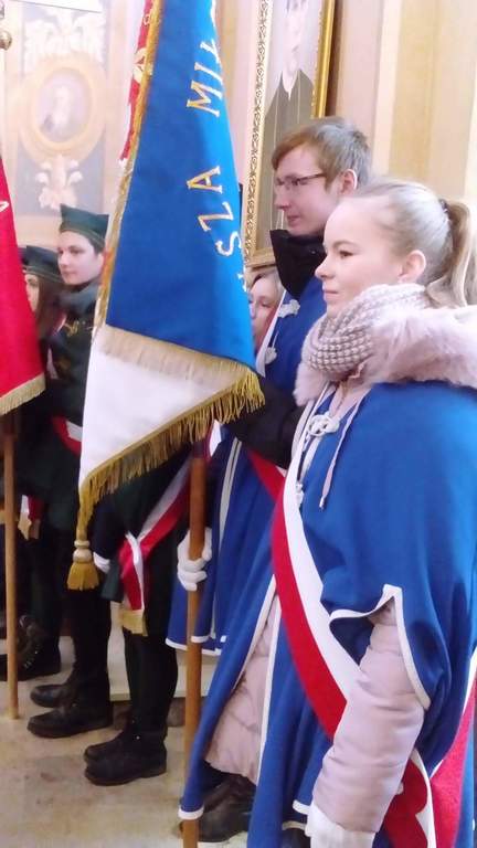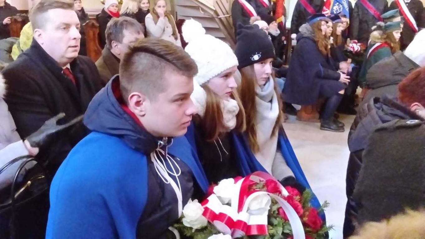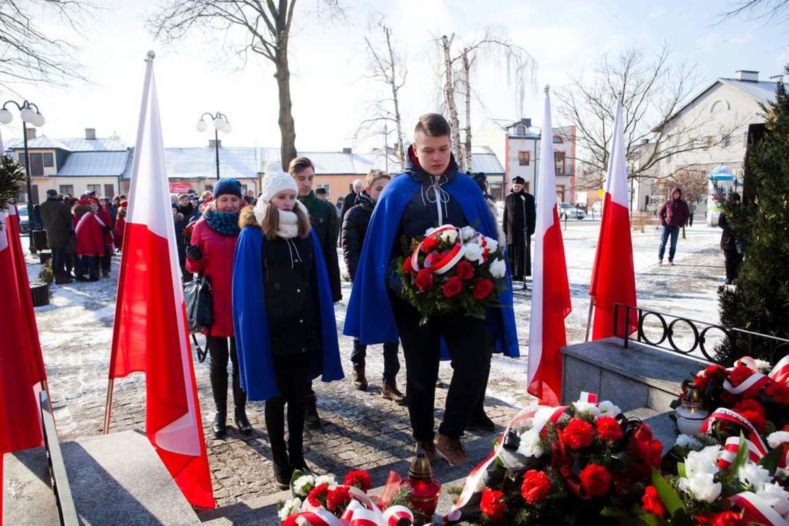 We czwartek 1 marca 2018r. w Jedlińsku obchodzono Narodowy Dzień Pamięci „Żołnierzy Wyklętych”, w którym uczestniczyła reprezentacja naszej szkoły. Uroczystość odbyła się w kościele parafialnym w Jedlińsku oraz na Rynku pod pomnikiem żołnierzy AK poległych i pomordowanych w latach 1939–1956. Wójt Gminy Pan Kamil Dziewierz podsumował także gminny konkurs na motyw plakatu informującego o obchodach Narodowego Dnia Pamięci "Żołnierzy Wyklętych" i wręczył nagrody laureatom. Pierwsze miejsce zajął Tomasz Gierasiński, a wyróżnienie otrzymał Dawid Drewnowski - uczniowie klasy IIIb naszej szkoły. Serdecznie gratulujemy chłopcom i życzymy dalszych sukcesów w kolejnych konkursach!
