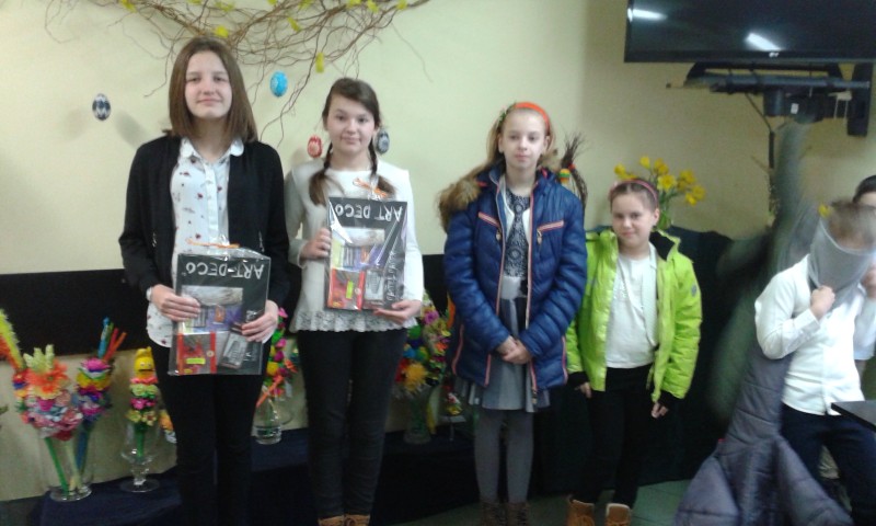 Po raz kolejny uczniowie naszej szkoły wzięli udział w Gminnym Konkursie Plastycznym na Symbol Świąt Wielkanocnych. Tym razem przygotowali przepiękne palmy i stroiki , wykazując przy tym wielką pomysłowość i niemałą cierpliwość. Wśród nagrodzonych i wyróżnionych znaleźli się uczniowie klas 0 - 3: Wiktoria Dawidowska, Marcin Bugajski, Patrycja Marszałek, Zuzanna Wolak oraz Kinga Kocińska- uczennica klasy 5, a także Aleksandra Kobza i Marta Trzeciak- uczennice klasy 7. Wszyscy uczniowie wzięli udział w uroczystości wręczenia nagród w GCKiKF w Jedlińsku.