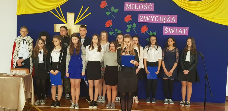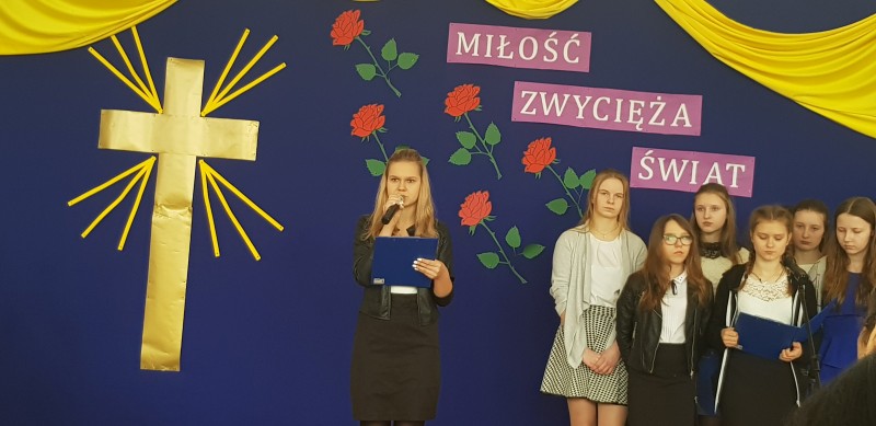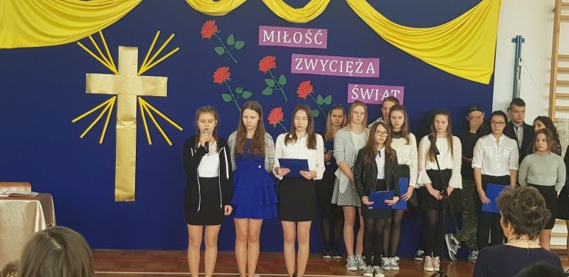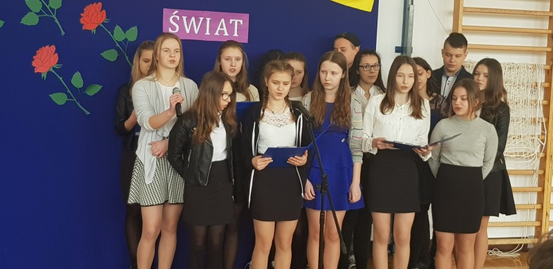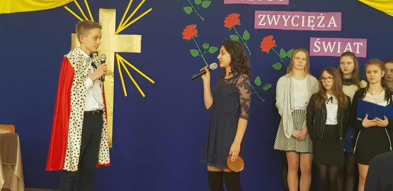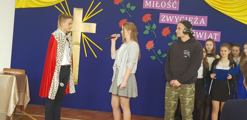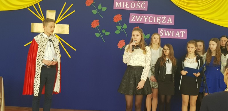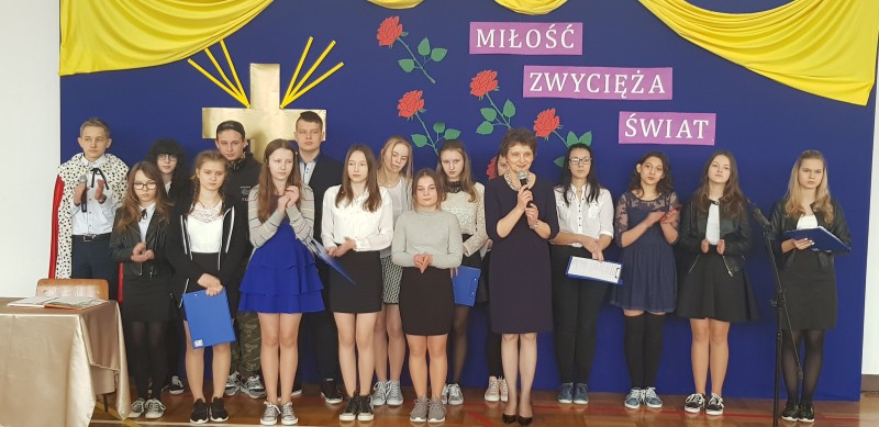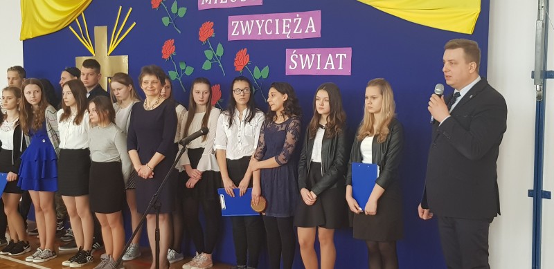 W środę 28 marca społeczność szkolna uczestniczyła w Poranku Wielkanocnym, który wprowadził nas w atmosferę zbliżających się świąt. Uczniowie gimnazjum – pod kierunkiem nauczycielek: p. Beaty Czwarno, p. Grażyny Cichowlas oraz p. Małgorzaty Zegarek - przedstawili okolicznościowy program na motywach książki Mały Książę skłaniający do refleksji na temat najważniejszych wartości w życiu. Bardzo wymowne są symbole pojawiające się w tekstach i dekoracji: Krzyż - symbol bezgranicznej miłości Jezusa do ludzi oraz róża symbolizująca najpiękniejsze uczucia i Mądrość Bożą. Po części artystycznej Pani Dyrektor Dorota Dobosz złożyła serdeczne życzenia świąteczne wszystkim zebranym, dzieląc się symbolicznym jajeczkiem. Wzruszające było wspólne wykonanie pieśni "Jezus jest mym Przyjacielem" na prośbę Pani Dyrektor. Na uroczystości gościliśmy Pana Marcina Drewnowskiego Radnego Gminy Jedlińsk, który życzył wszystkim rodzinnych świąt, a gimnazjalistom - pomyślnie zdanego egzaminu.