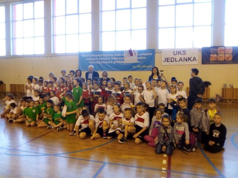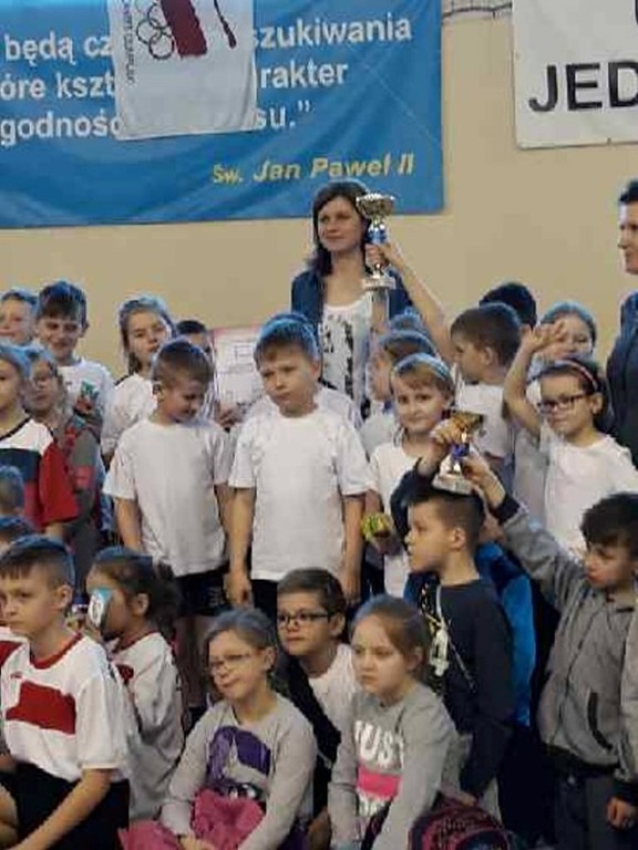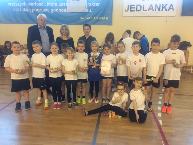 Uczniowie klas 1-3 reprezentowali naszą szkołę 06.04.2018r. w Olimpiadzie sportowej w PSP w Jedlance. Impreza rozpoczęła się powitaniem wszystkich uczestników przez Wójta Gminy Jedlińsk Pana Kamila Dziewierza oraz Dyrektora PSP w Jedlance Pana Ryszarda Dziurę. Została wciągnięta na maszt flaga olimpijska oraz zaśpiewaliśmy hymn olimpijski. Uczniowie rywalizowali ze sobą w takich konkurencjach jak: skoki zajęcze i powrót na jednej nodze, przejście z woreczkami na głowie i powrót w podskokach, rzut woreczkami do kosza, bieg z wykorzystaniem szarf itd. Konkurowaliśmy z sześcioma drużynami ze szkół Gminy Jedlińsk. Zajęliśmy zaszczytne drugie miejsce. Puchar, dyplom oraz wiele słodkości wręczył zwycięzcom Sekretarz Gminy Jedlińsk Pan Andrzej Pawluczyk. To były niezwykle emocjonujące zmagania, wspaniała zabawa. Specjalne podziękowania kierujemy do pań, nauczycielek klas 1-3, które przygotowywały uczniów do sportowej olimpiady.