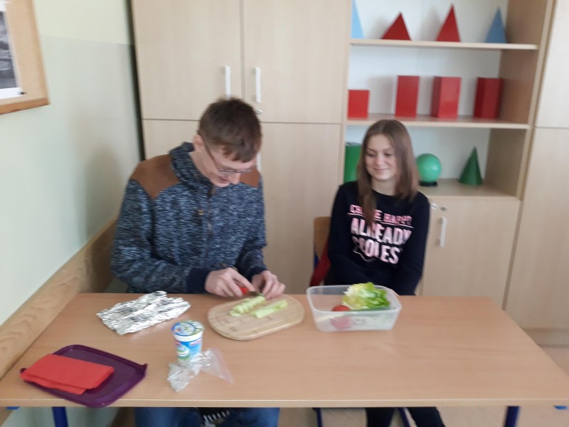 Na lekcjach i zajęciach świetlicowych uczniowie oglądali filmy promujące zasady zdrowego stylu życia, wykonywali plakaty, rozwiązywali rebusy, krzyżówki, omawiali zasady savoir-vivre przy stole, przygotowywali swoje ulubione posiłki.