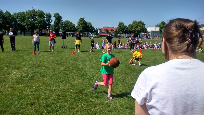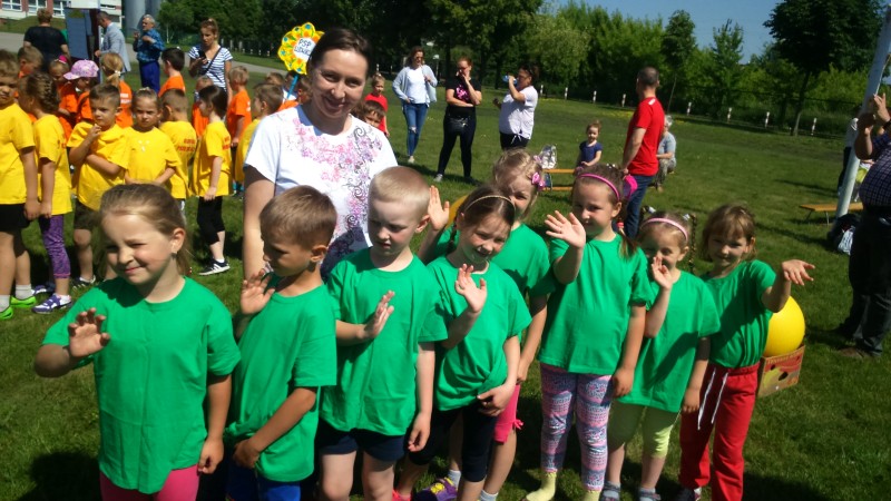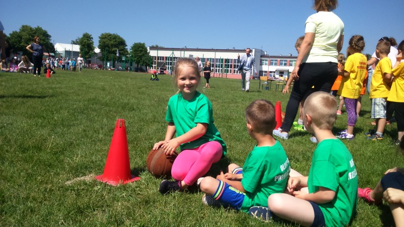 W tym roku drużyny z każdej placówki miały wykonać plakat na temat ,,Bawimy się bezpiecznie bez przemocy i agresji”. Olimpiadę rozpoczęto uroczystym wniesieniem flagi olimpijskiej i zapaleniem znicza. Dzieci złożyły ślubowanie, odśpiewały hymn olimpiady sportowej. Nasza grupa wykonała przepiękny układ taneczny. Przedszkolaki rywalizowały ze sobą w takich konkurencjach jak: bieg do szarfy, skoki w workach, praca mrówek, wyścig na piłach, zabawa bieżna kelner, rzut woreczkiem do pachołka, poślizg ławeczce, sztafeta, skoki z miejsca dodawane.